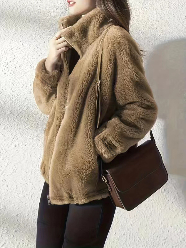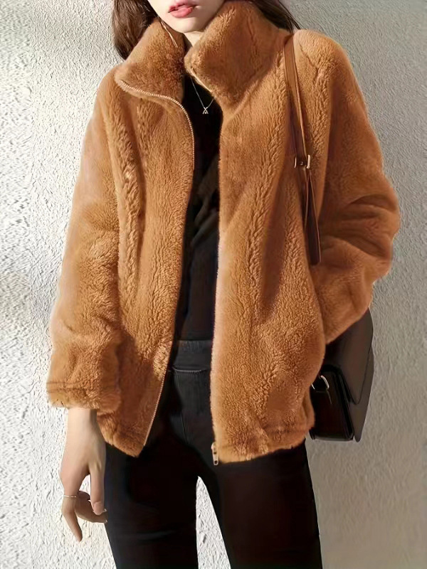 | nameOriginal | 2023 Women's fashion casual solid color pocket long sleeve zipper cardigan plush coat |