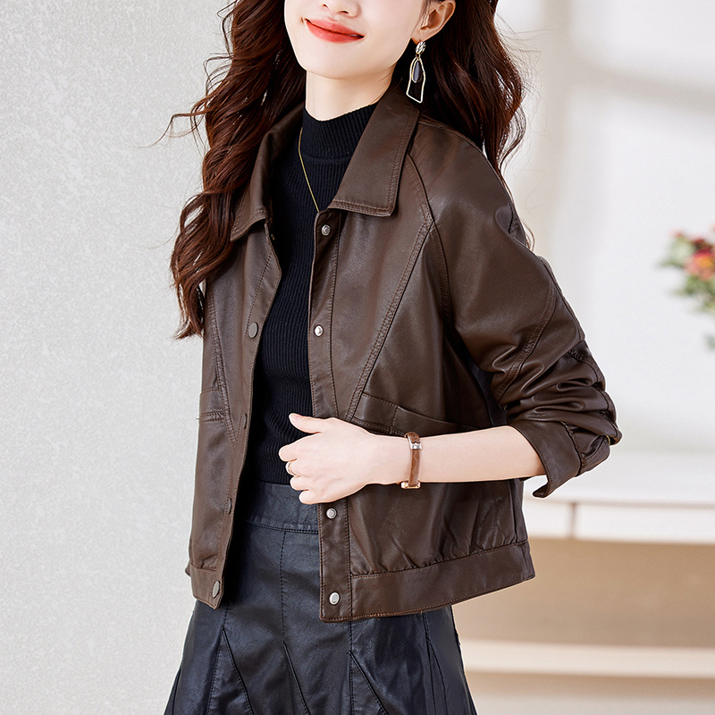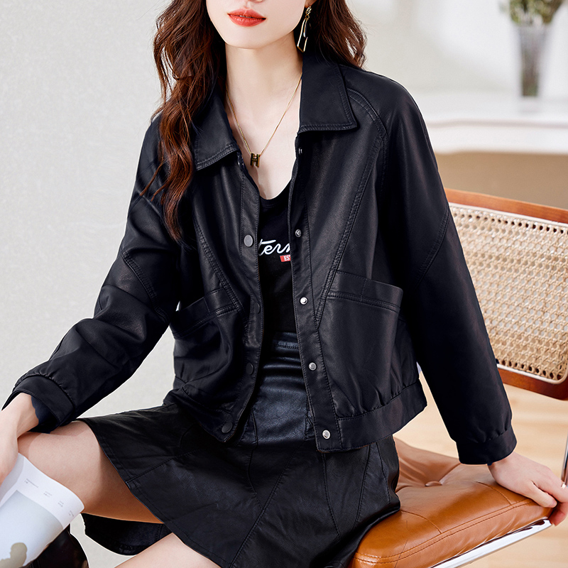 2023 Women’s leather loose coat new popular soft leather motorcycle short fashion PU leather jacket casual top