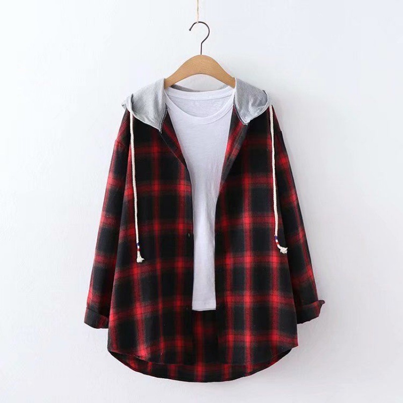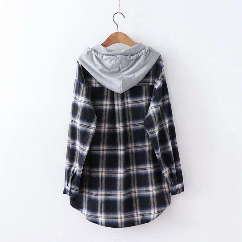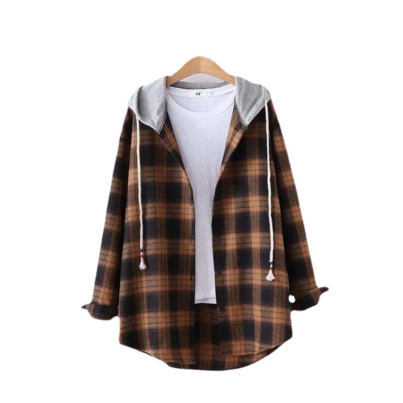 | nameOriginal | 2023 Women's new Korean style hooded bf loose plaid long sleeve women's shirt Harajuku student shirt coat |