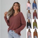 2023eBay Amazon Europe and the United States foreign trade explosions women’s autumn loose V-neck large size knitted bottoming shirt direct sales