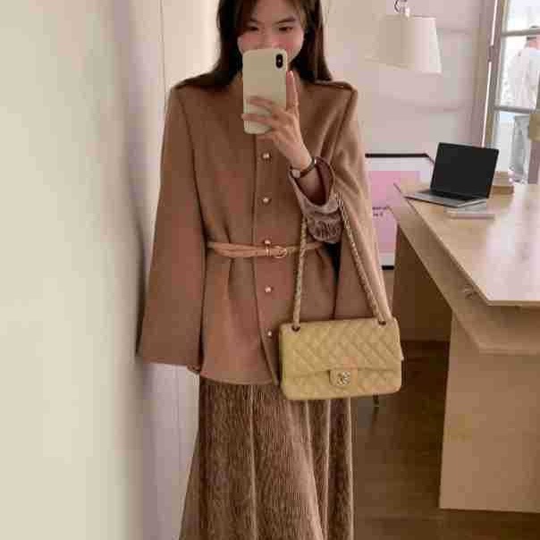 2023South Korea Dongdaemun double-sided hand-stitched cashmere wool coat high-quality loose cape coat DY-1308