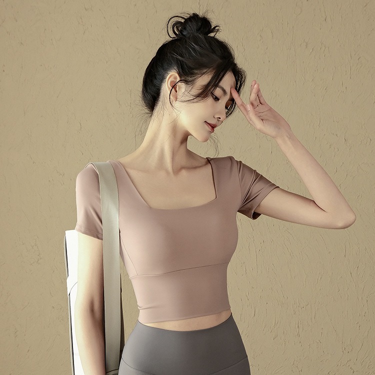 | nameOriginal | 2024新款带胸垫瑜伽服女修身显瘦运动上衣高级感短袖T恤普拉提训 |