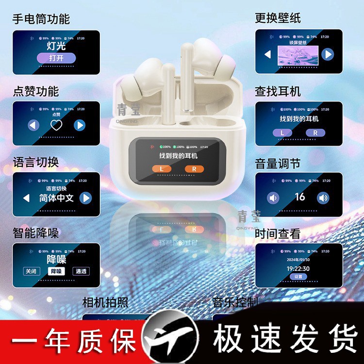 | nameOriginal | 2024新款蓝牙耳机无线主动降噪高颜值带屏幕触控不漏音入耳式青莹 |