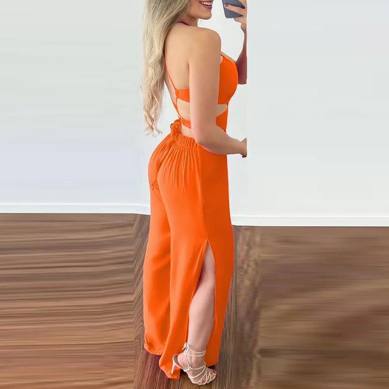 | nameOriginal | 2024 AliExpress Cross-border European and American Foreign Trade Women's Commuting Sexy Neck Hollow Slim-fit Backless Split Jumpsuit |