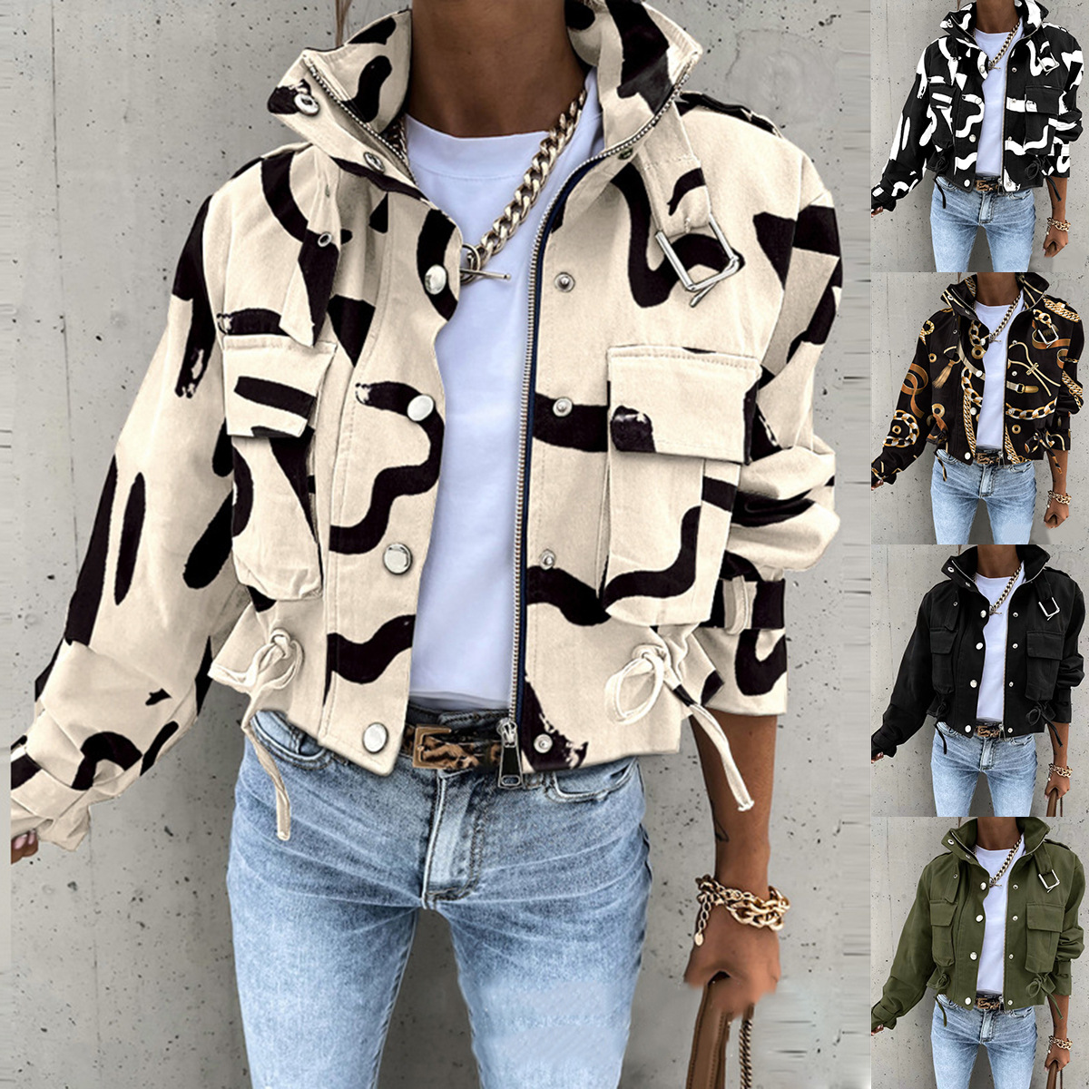 2024 Amazon AliExpress New Autumn and Winter Printed Short Casual Coat Women's Clothing