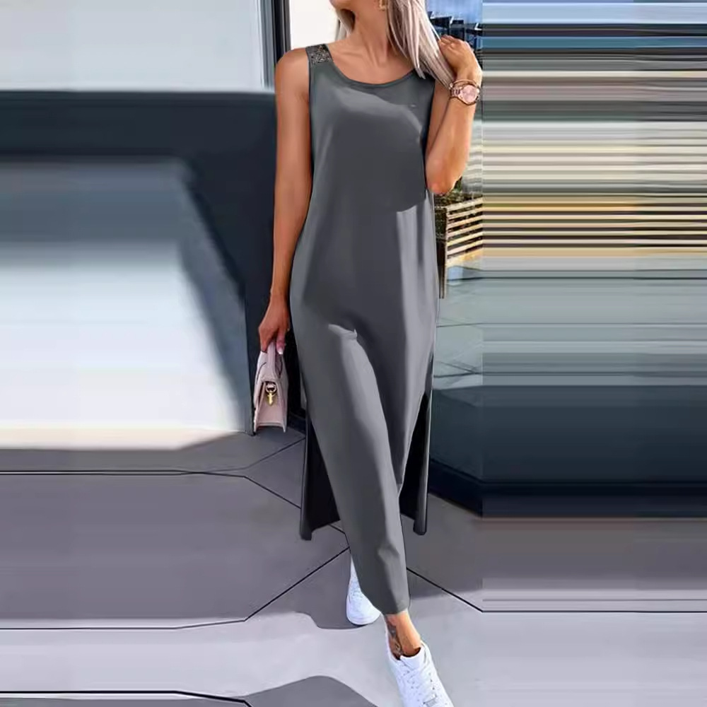 2024 Amazon AliExpress New Summer Simple Solid Color Back Lace Sleeveless dress Women's Clothing