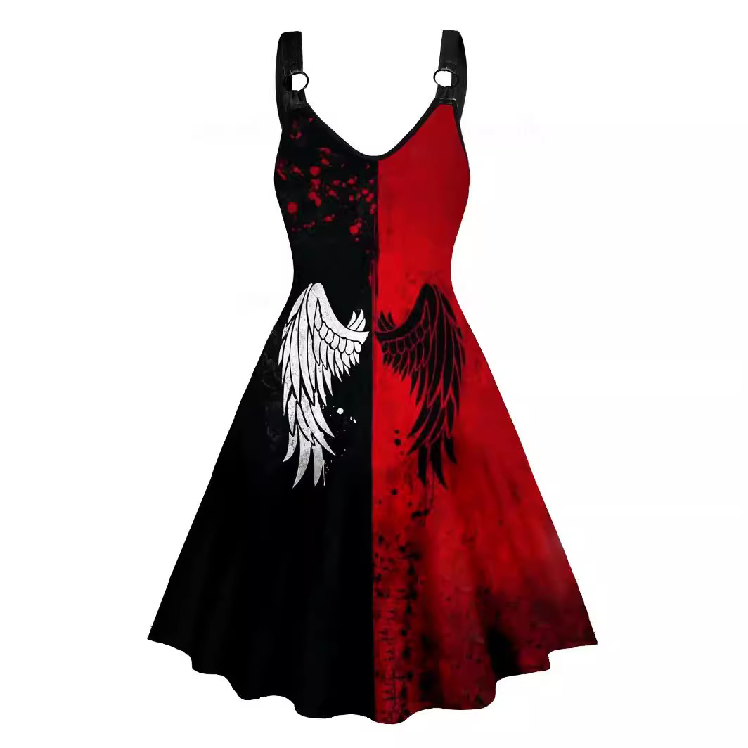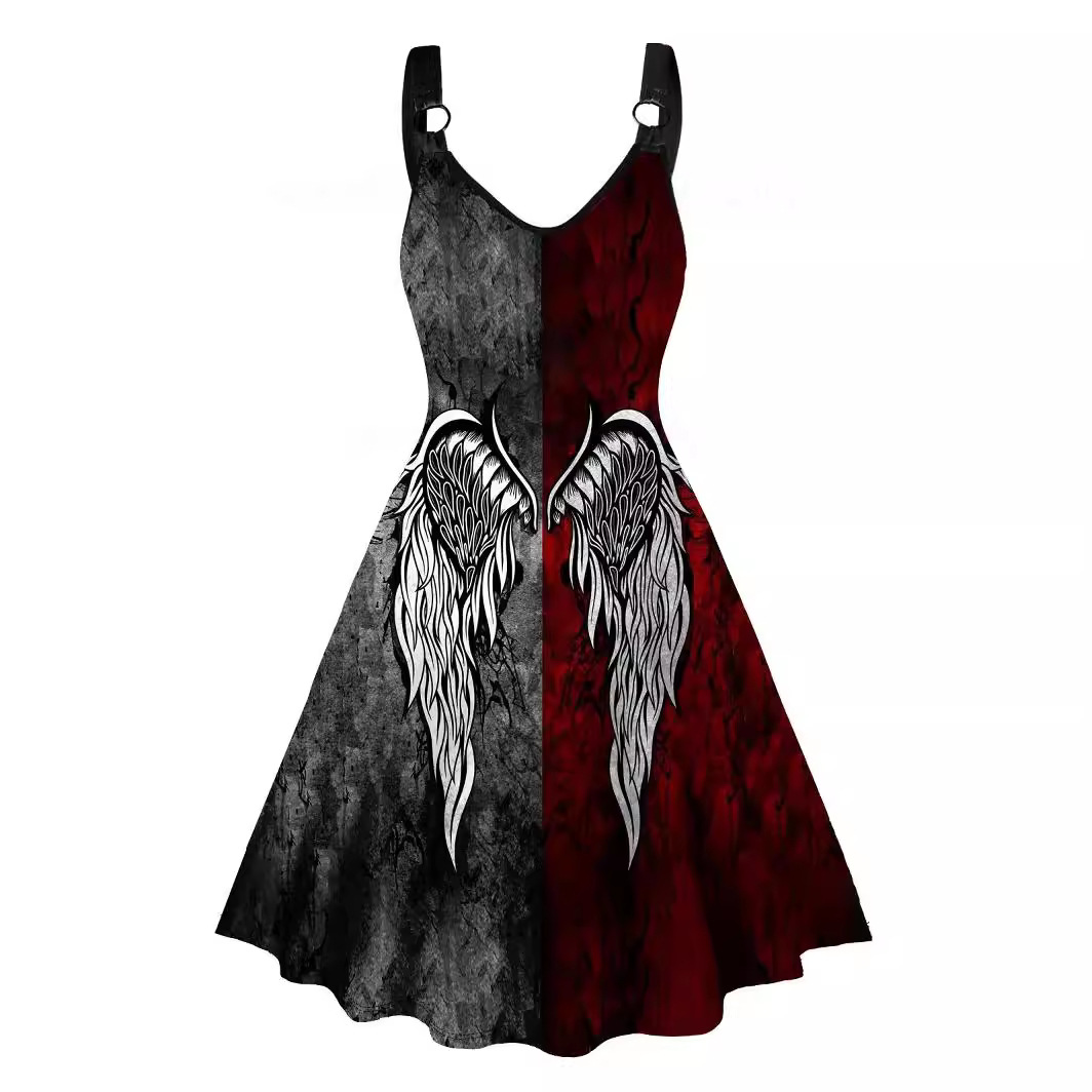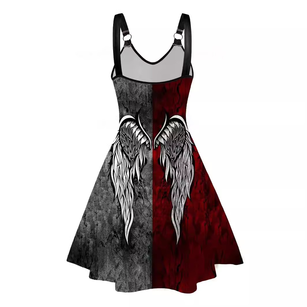 | nameOriginal | 2024 Amazon Cross-border Women's Clothing Spring and Summer New Style Personalized Gothic Wings Printed Backless Sling dress |