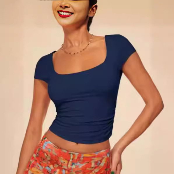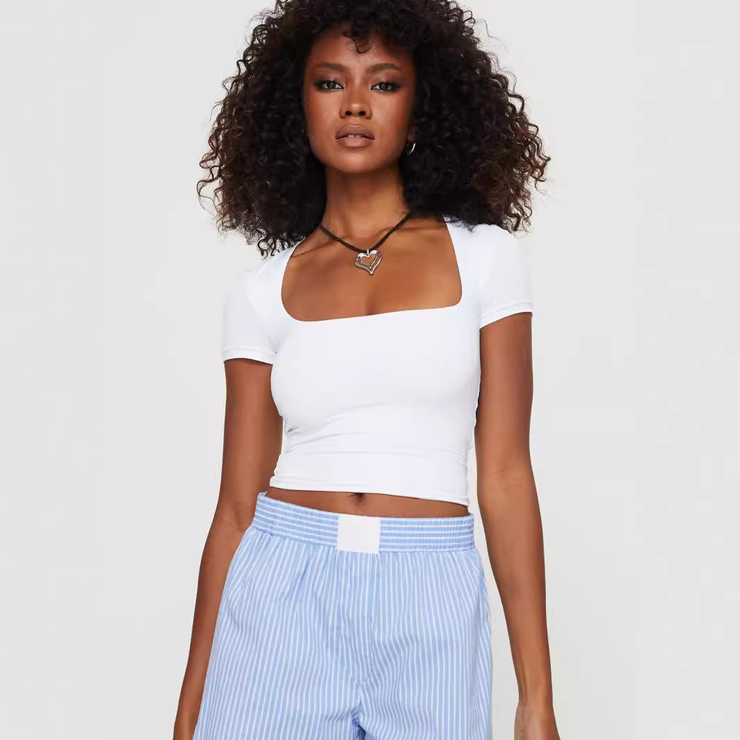 | nameOriginal | 2024 Amazon ebay new hot selling women's clothing European and American slim solid color short sleeve summer square collar casual T-shirt for women |