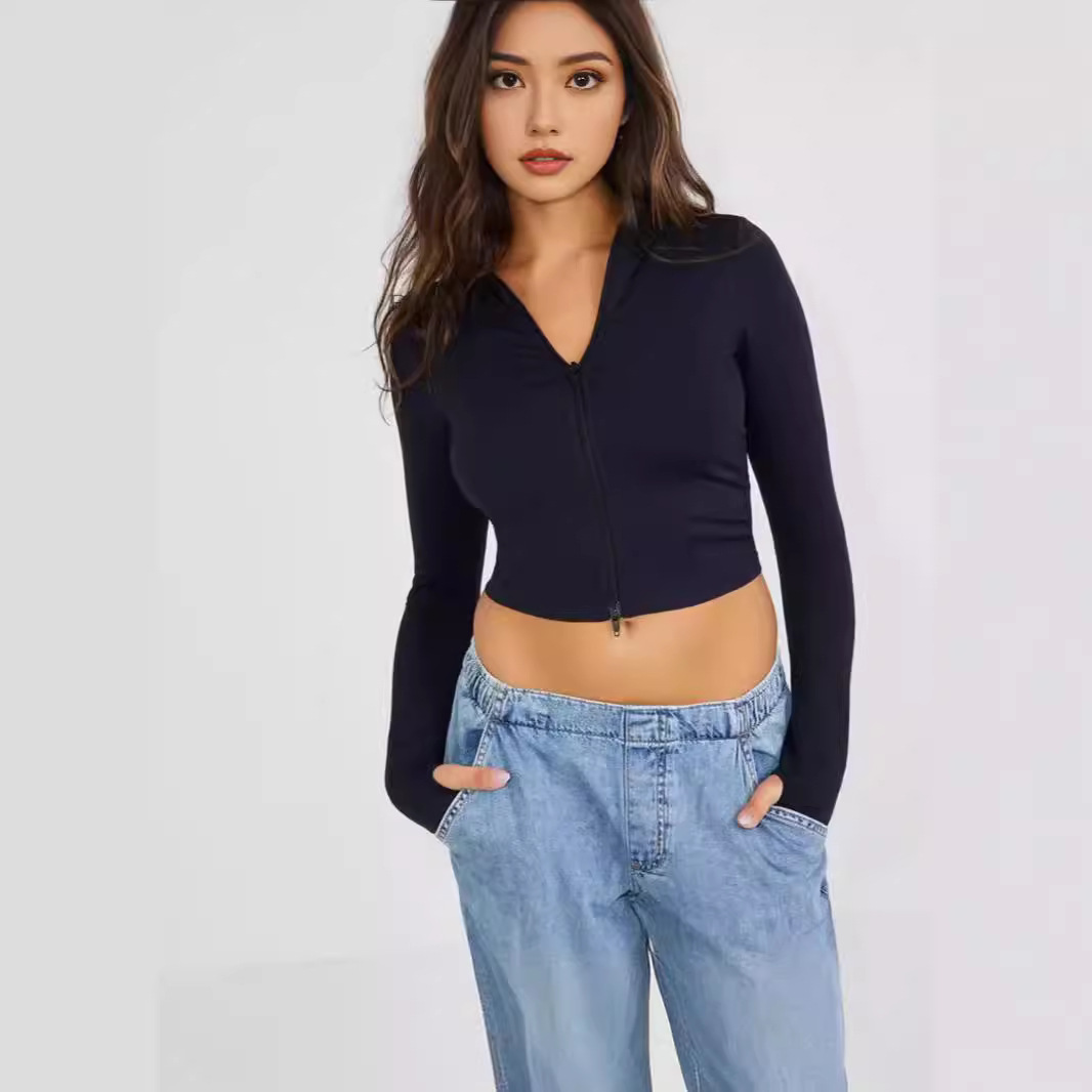 2024 Amazon European and American foreign trade yoga coat new sunscreen stand collar zipper cardigan sports long sleeve coat