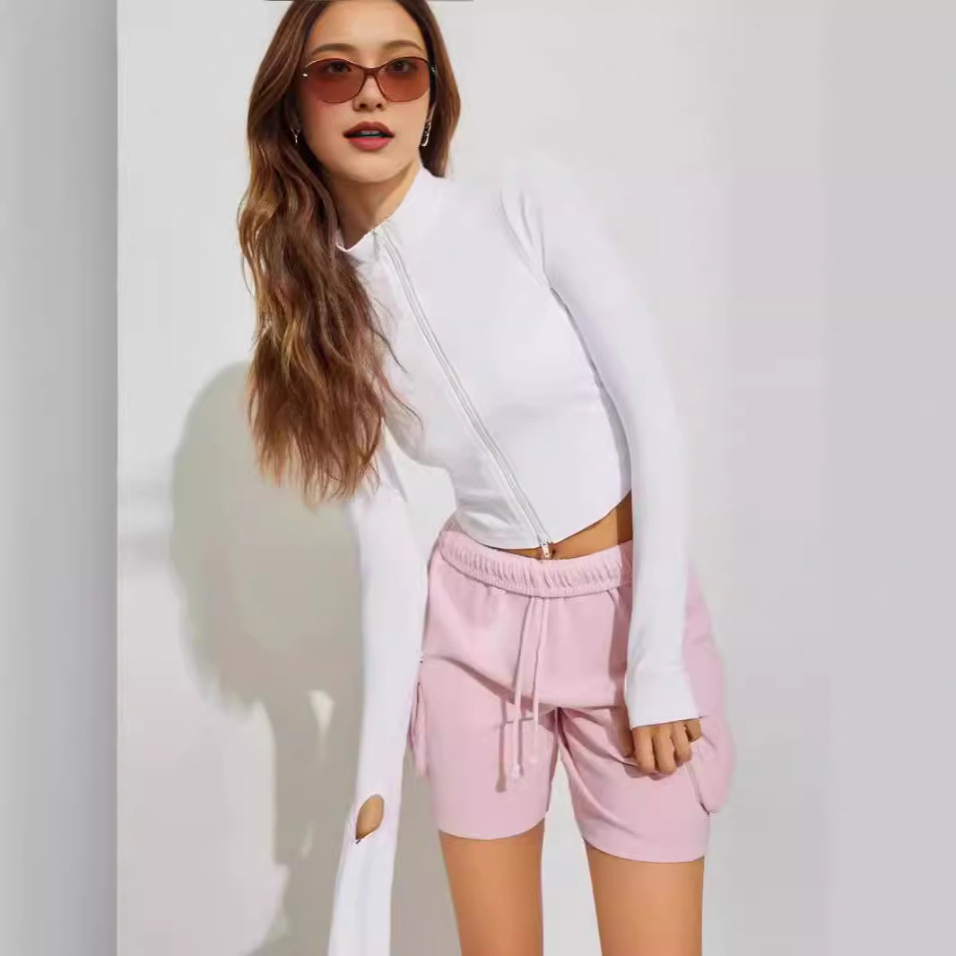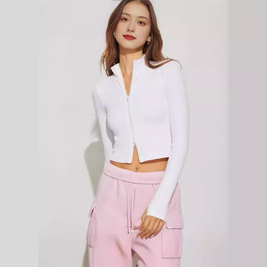 2024 Amazon European and American foreign trade yoga coat new sunscreen stand collar zipper cardigan sports long sleeve coat