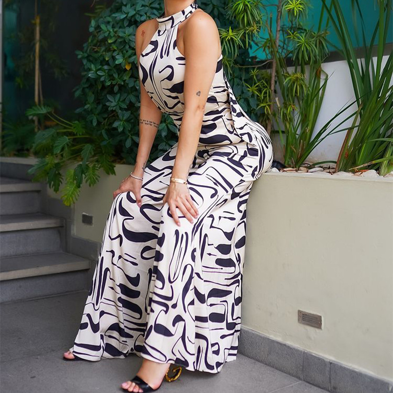 2024 Amazon European and American Women's Spring and Summer New Cross-border Women's Fashion Elegant Printed Waist High Waist Pants