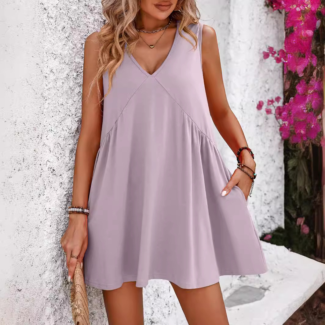 2024 Amazon New Women’s Cross-border European and American Summer Casual V-neck Sleeveless Vest Loose dress