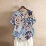 | nameOriginal | 2024 Amazon wish AliExpress blue phoenix tail printed retro short sleeve round neck T-shirt cotton and linen plus size shirt for women |
