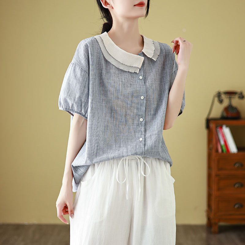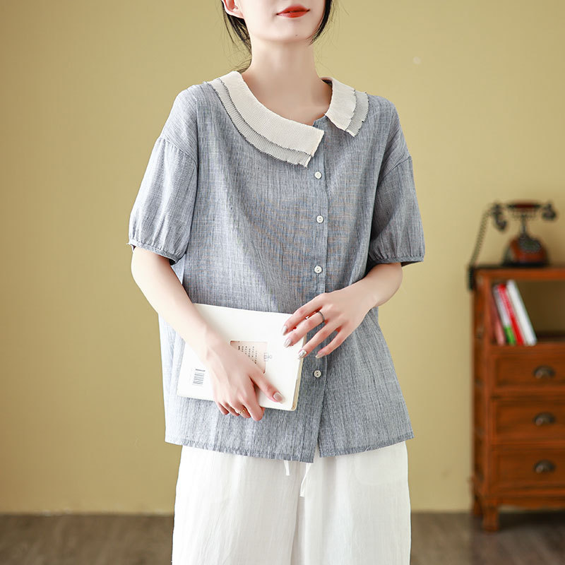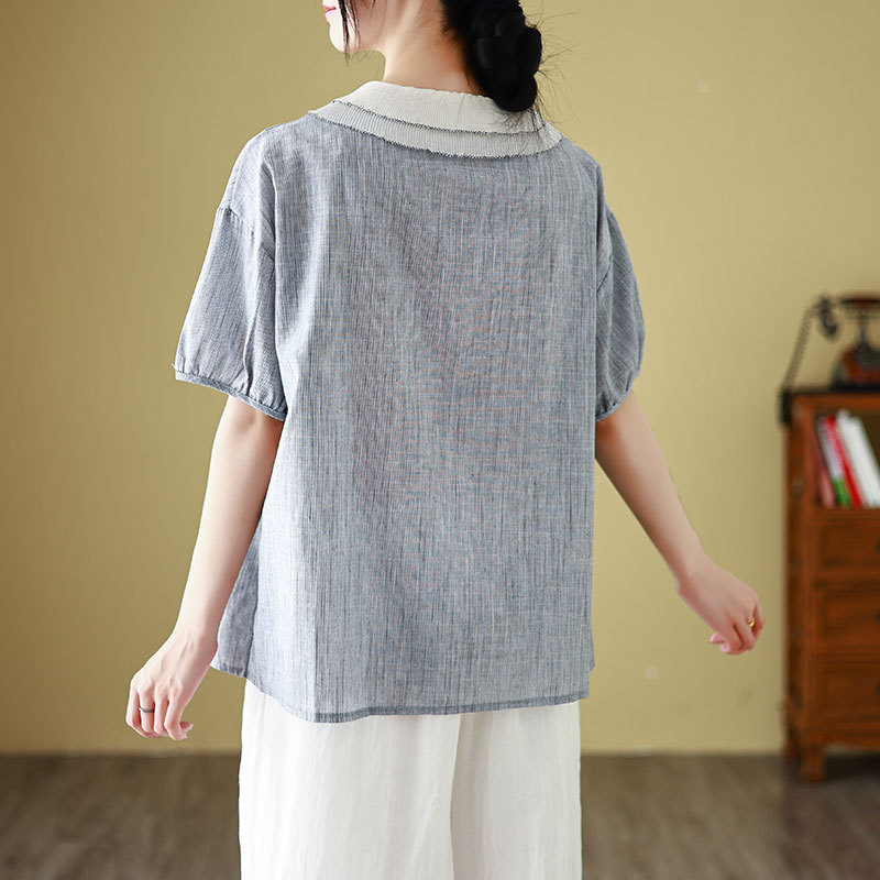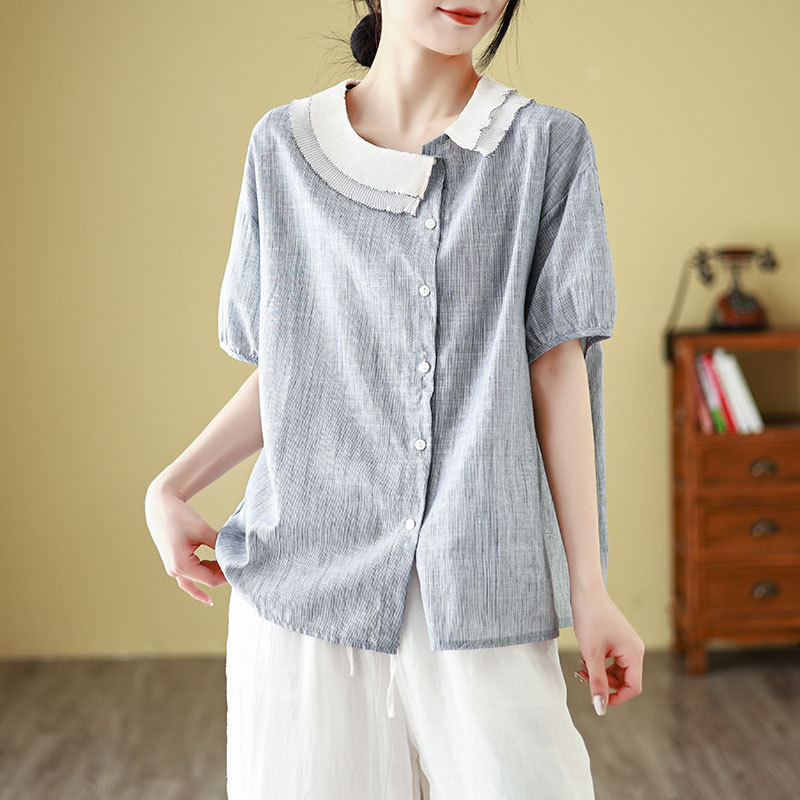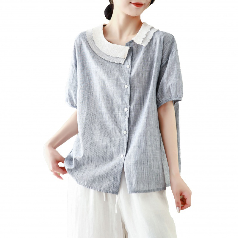 | nameOriginal | 2024 Artistic Linen Raindew Linen Fine Branch Yarn-dyed Striped Cloth Summer New Pleated Doll Collar Shirt |