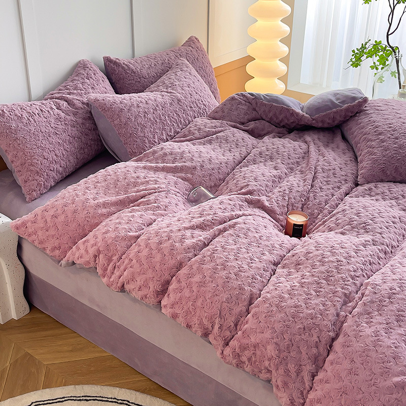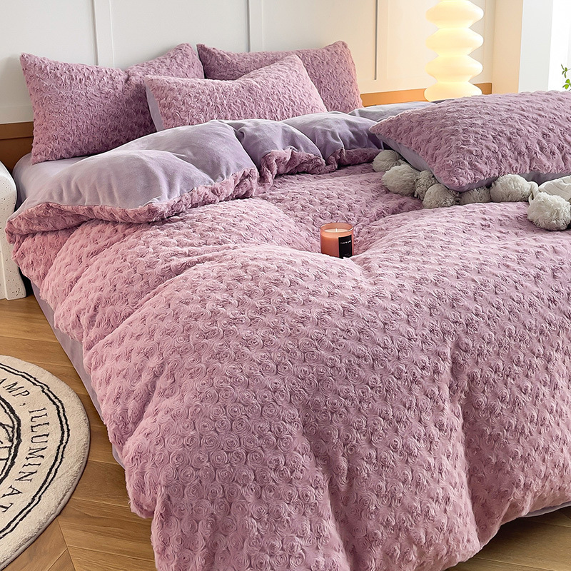 | nameOriginal | 2024 autumn and winter four-piece bed set Rex rabbit fur imitation leather cut flower milk velvet rabbit velvet padded |