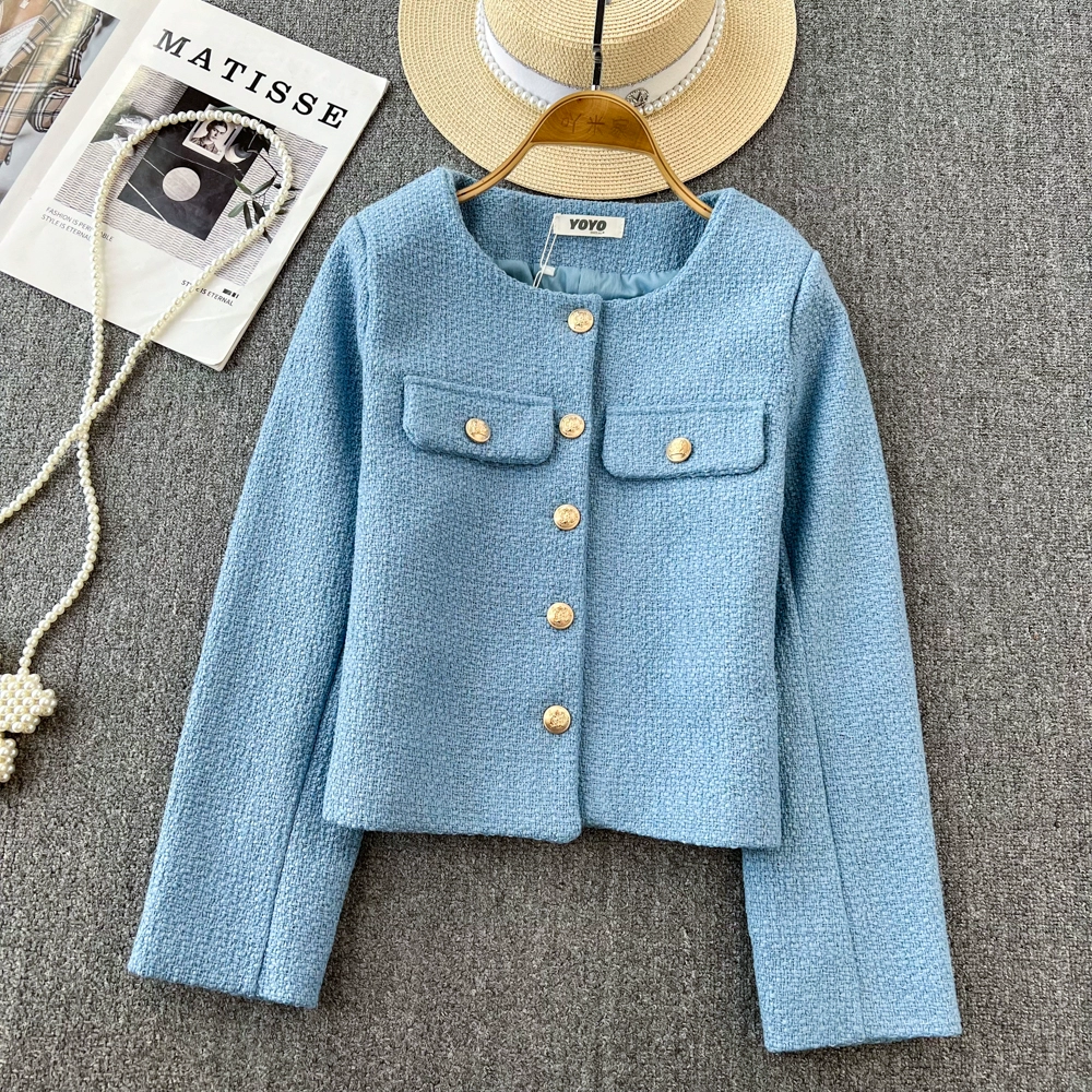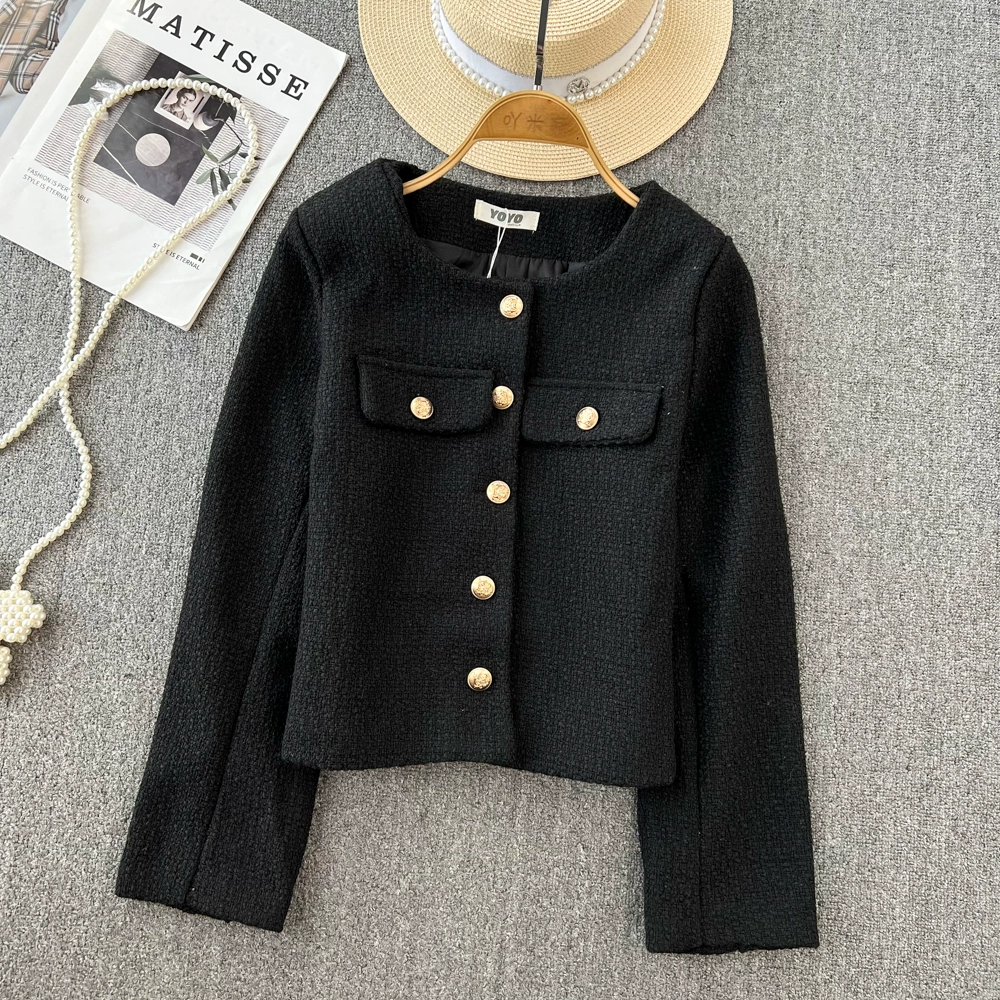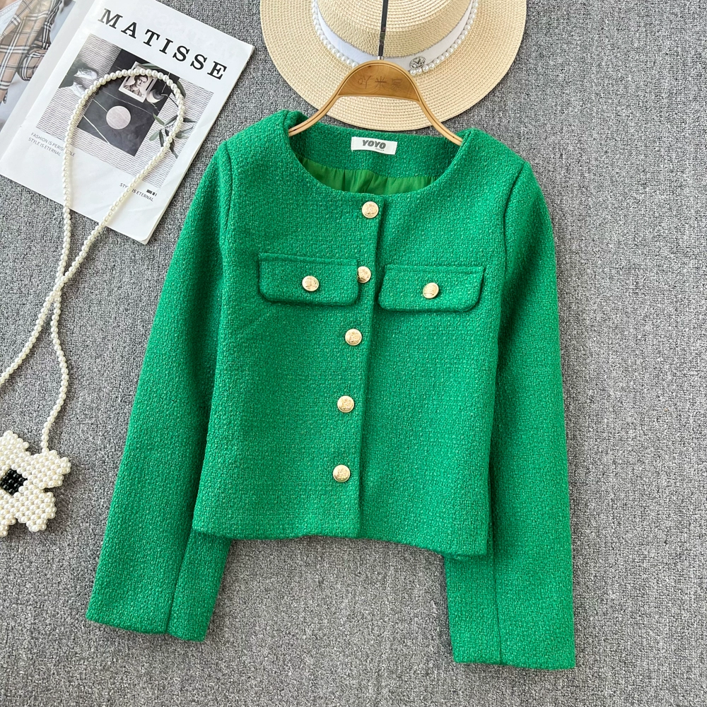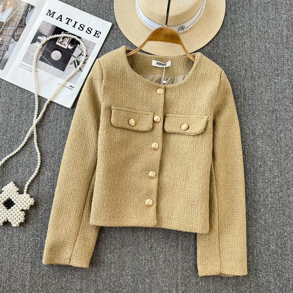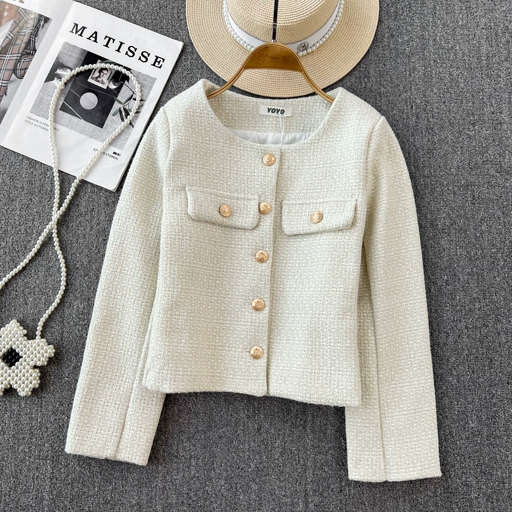 | nameOriginal | 2024 autumn and winter French style round neck single-breasted tweed jacket women's fashionable casual suit top |