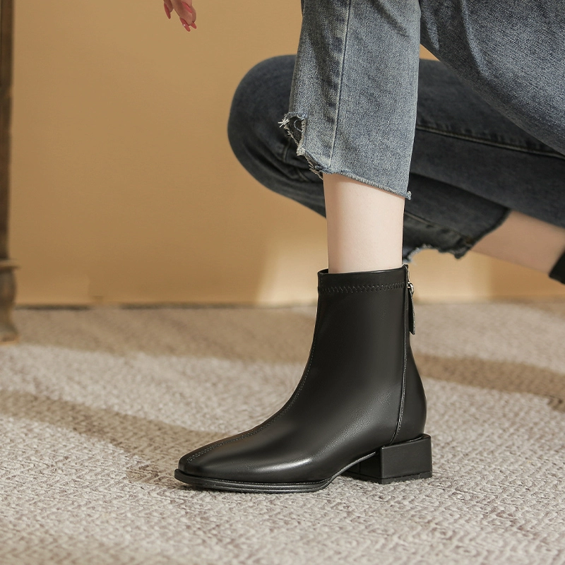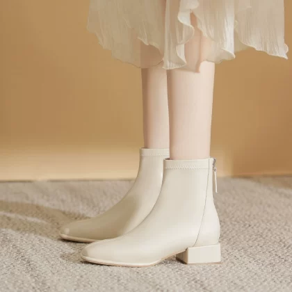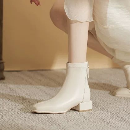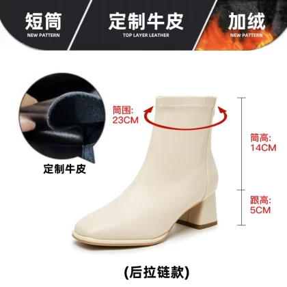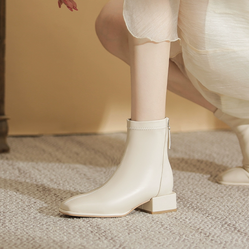 | nameOriginal | 2024 Autumn and Winter Genuine Leather White Short Boots for Women Thick Heel Medium Heel High Heel Boots Internet Popular Slim Boots Chelsea Boots for Women |