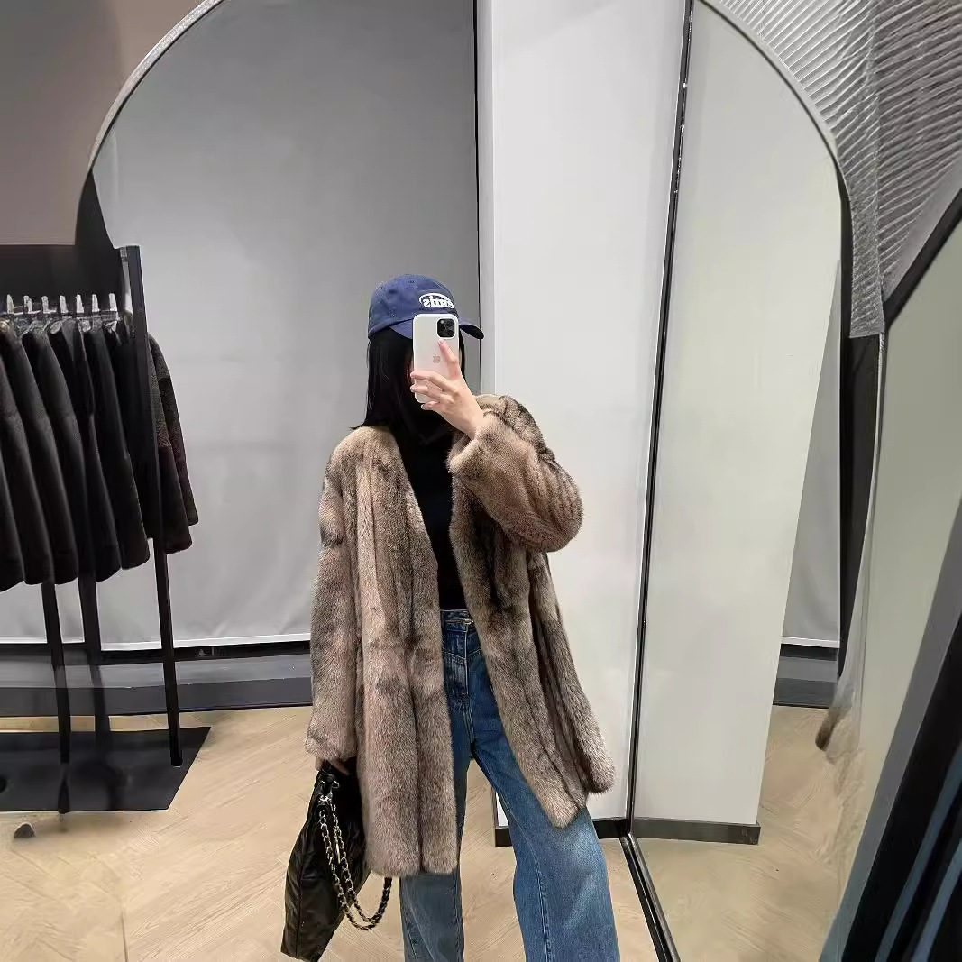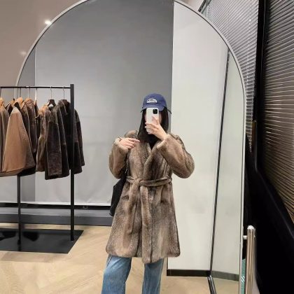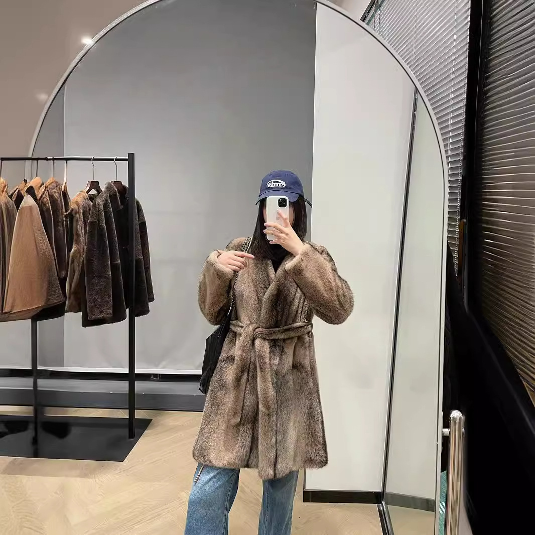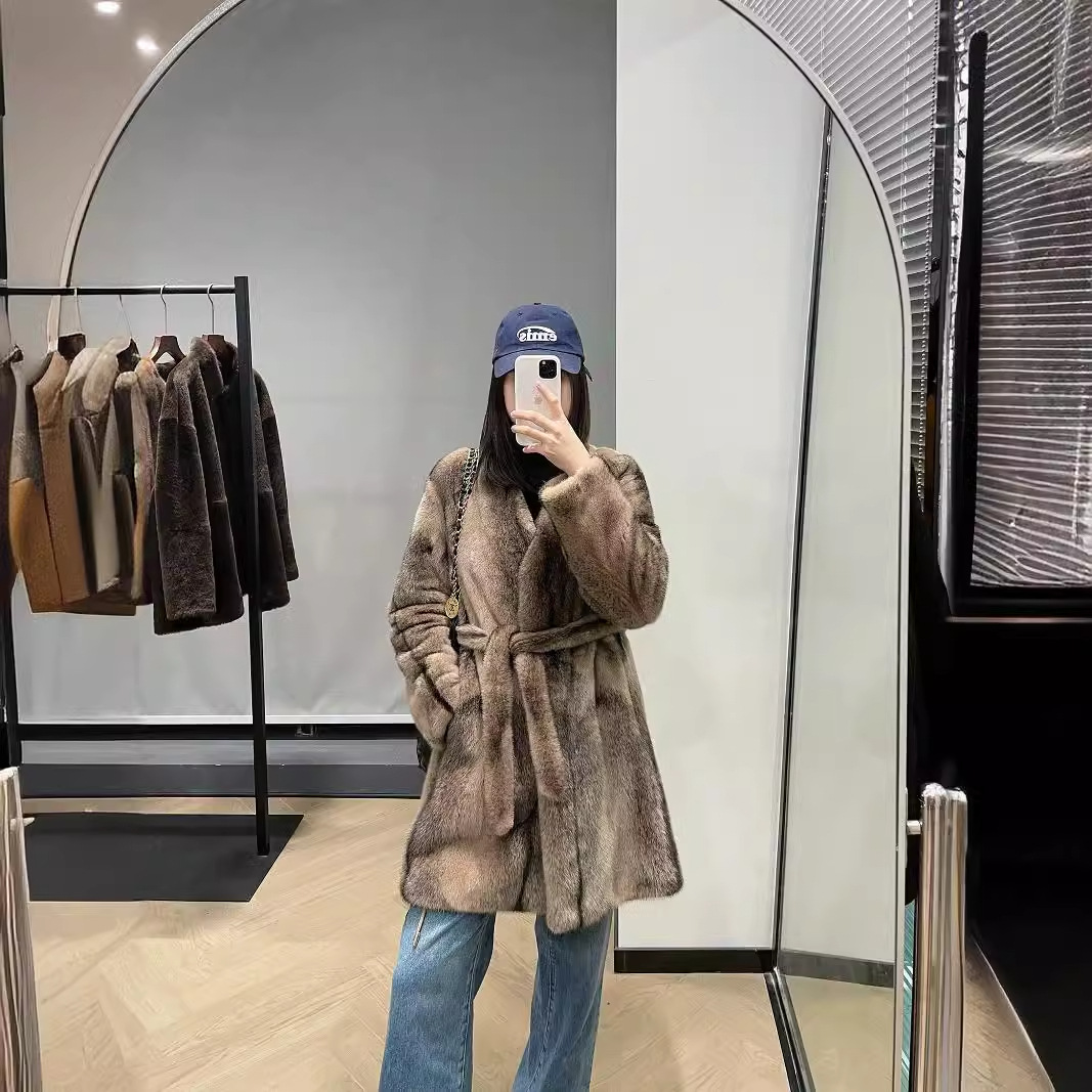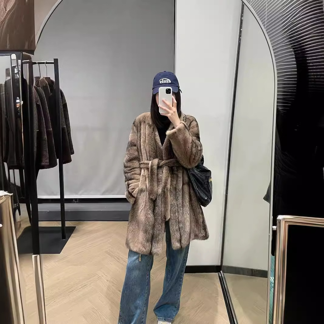 | nameOriginal | 2024 autumn and winter new classic V-neck limited cross mink lace-up long mink fur lazy casual scarcity |