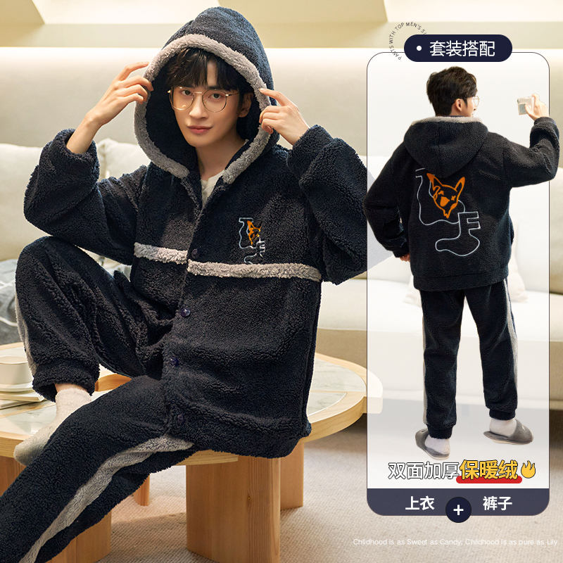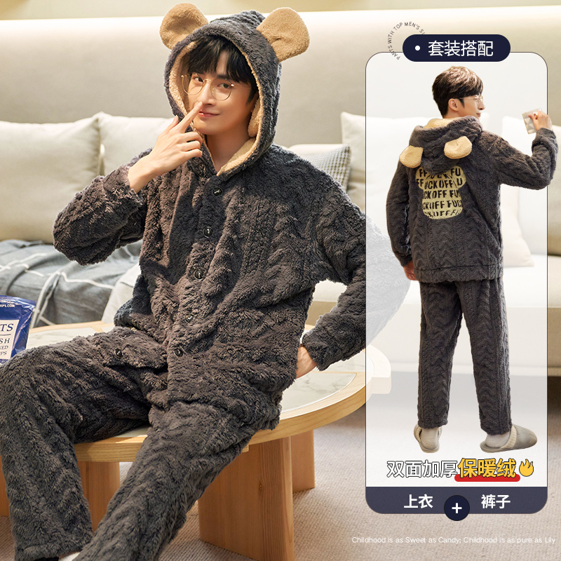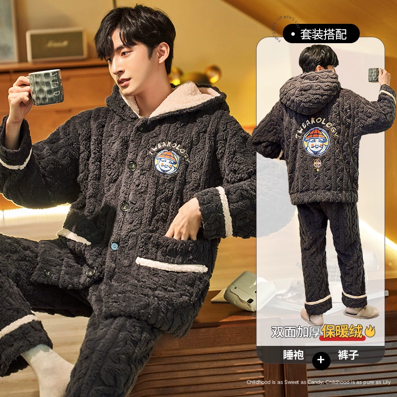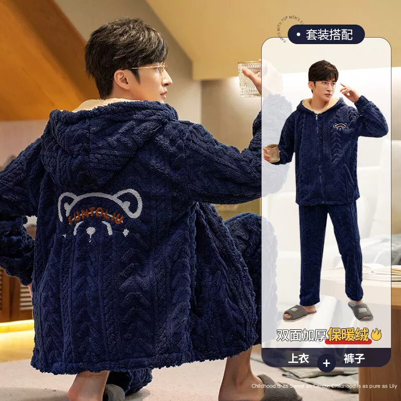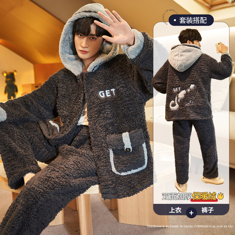 | nameOriginal | 2024 Autumn and Winter New Coral Fleece Pajamas Men's Thickened and Velvet Men's Youth Winter Home Clothing for Boys |