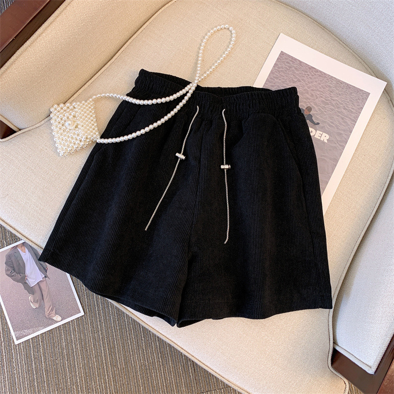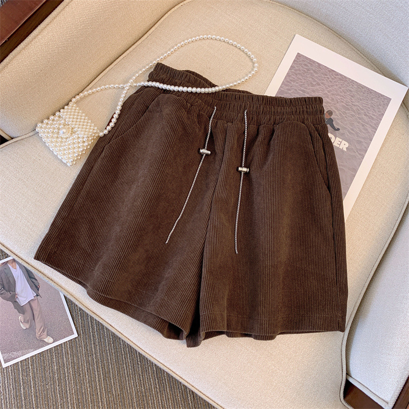 2024 autumn and winter new corduroy pants elastic high waist A- shaped shorts winter wide leg pants outerwear women’s slim