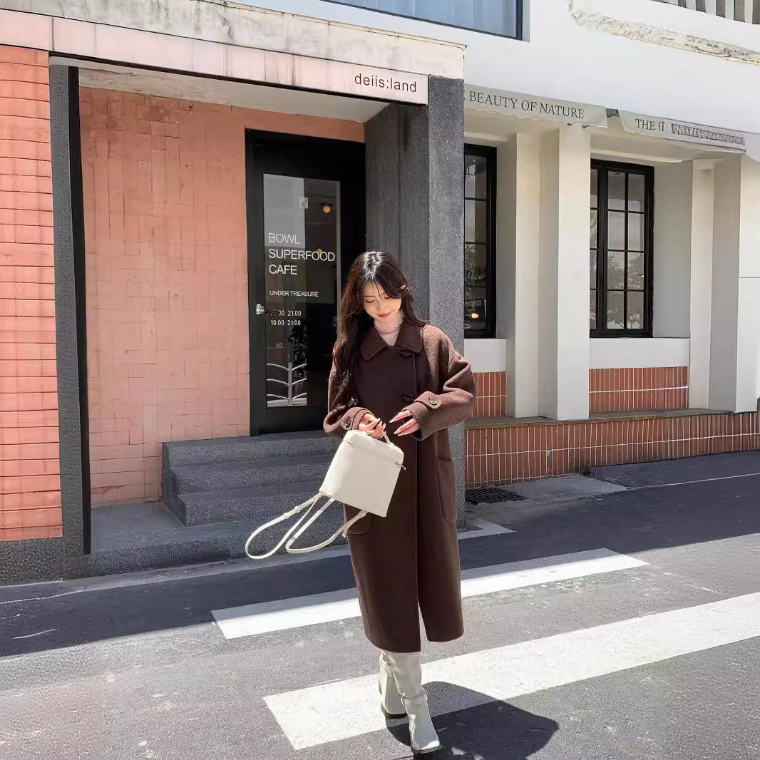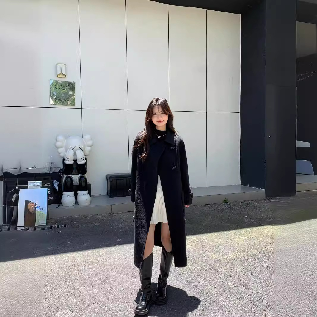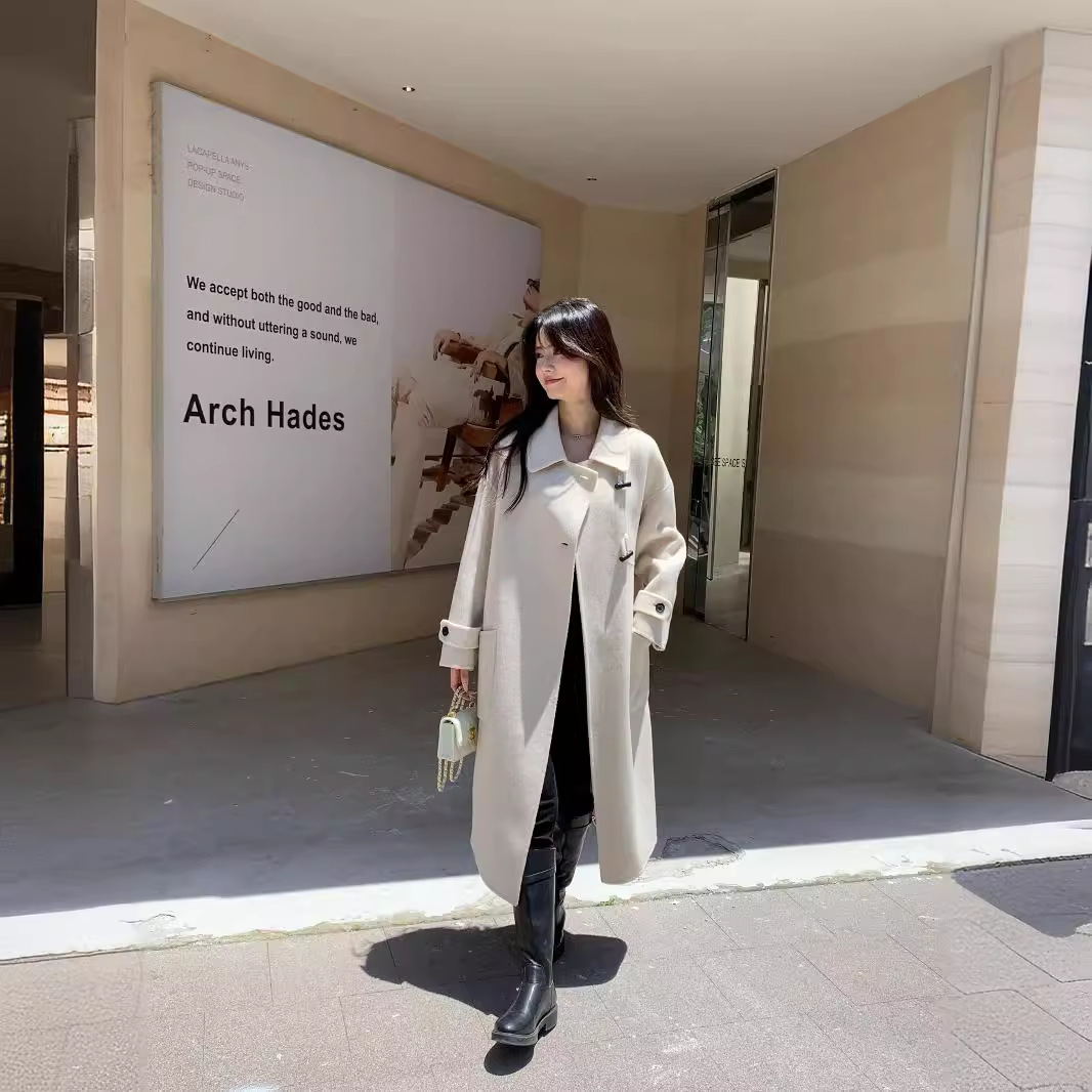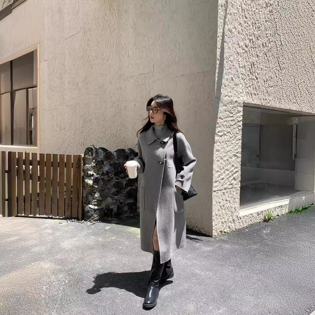 2024 Autumn and Winter New Double-sided Cashmere Coat Women’s Mid-length Korean-style Horns Buckle 100 Wool Coat