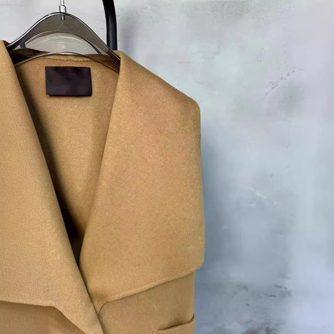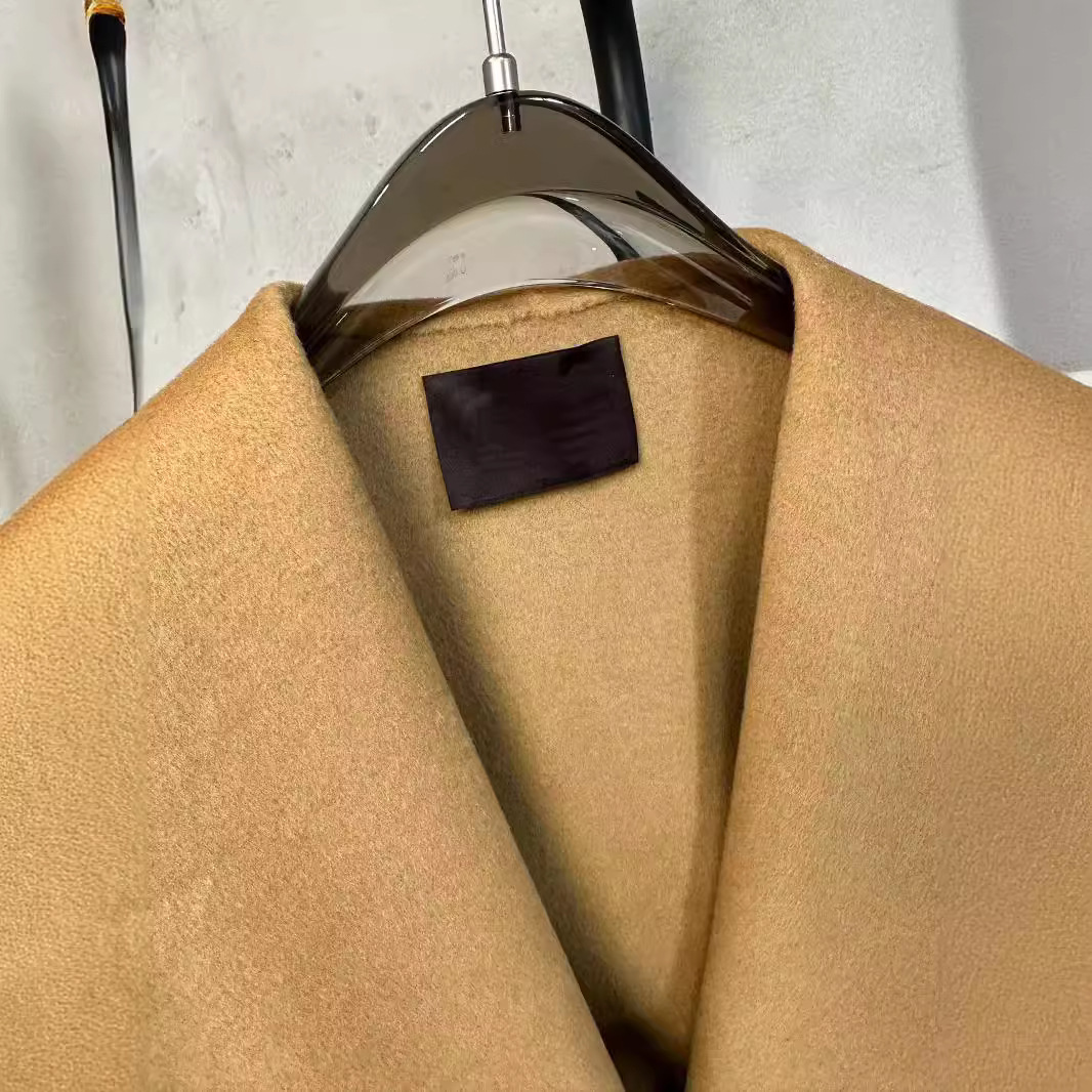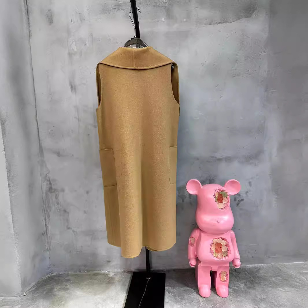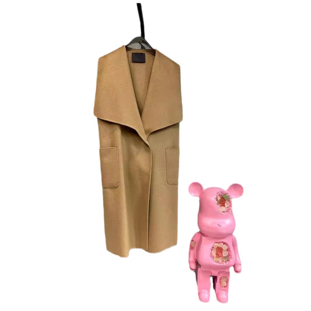 2024 Autumn and Winter New Double-sided Hand-stitched Cashmere Large Lapel Lace Vest Wool Coat Women’s Woolen Coat