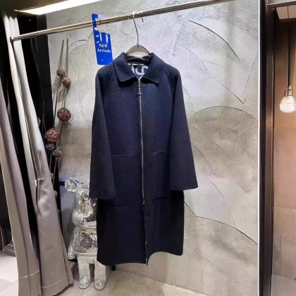 2024 Autumn and Winter New Double-sided Hand-stitched Cashmere Zipper Gentle Simple Elegant Wool Coat for Women