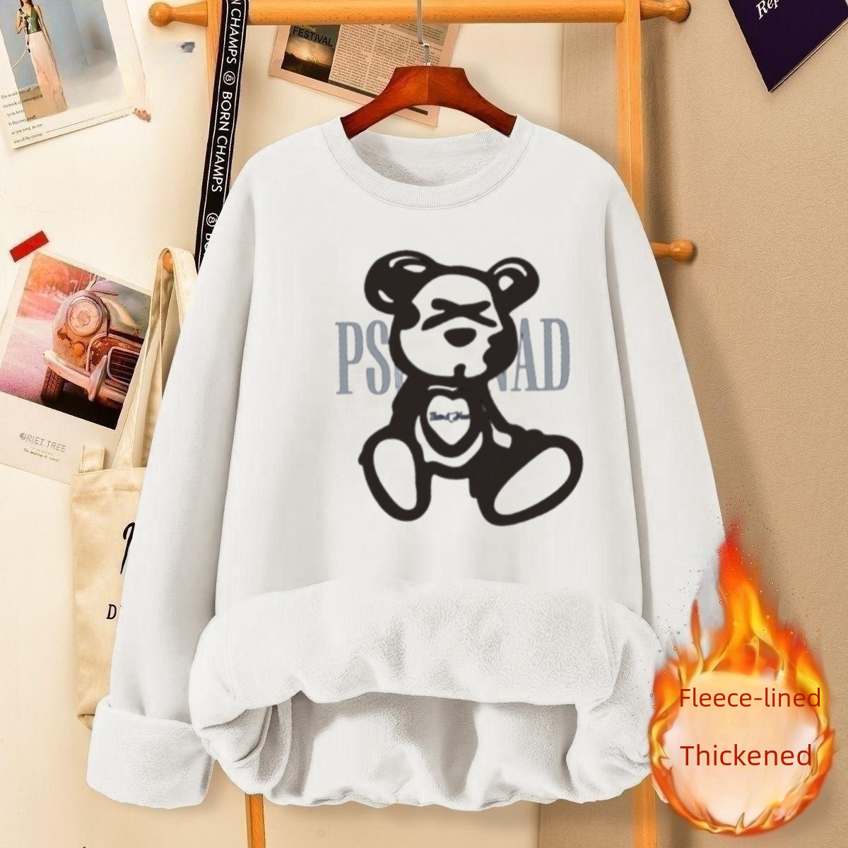 | nameOriginal | 2024 autumn and winter New fleece-lined thickened round neck sweater women's fashion fashion cartoon printed loose all-match top fashion |
