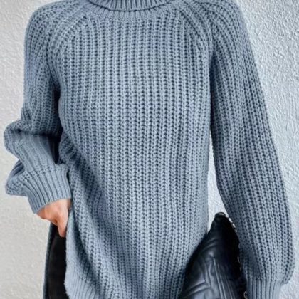 | nameOriginal | 2024 autumn and winter new foreign trade wish sweater long raglan sleeve high lapel split sweater dress women |