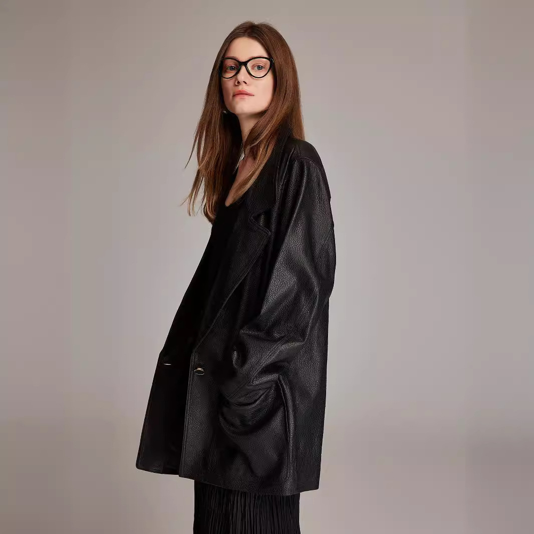 | nameOriginal | 2024 autumn and winter new haining sheep leather bubble leather classic retro torre silhouette suit leather leather coat |