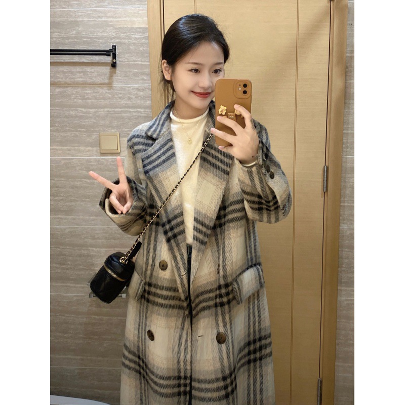 2024 autumn and winter new high quality loose Ouni coat autumn and winter woolen Korean style fashionable elegant plaid coat