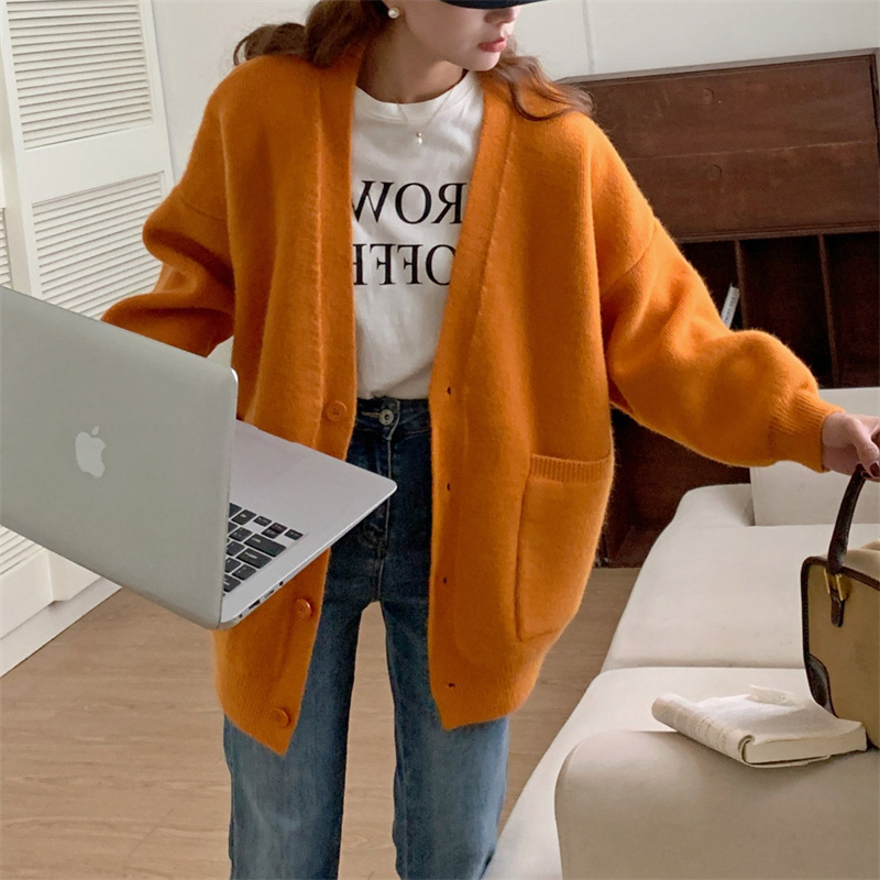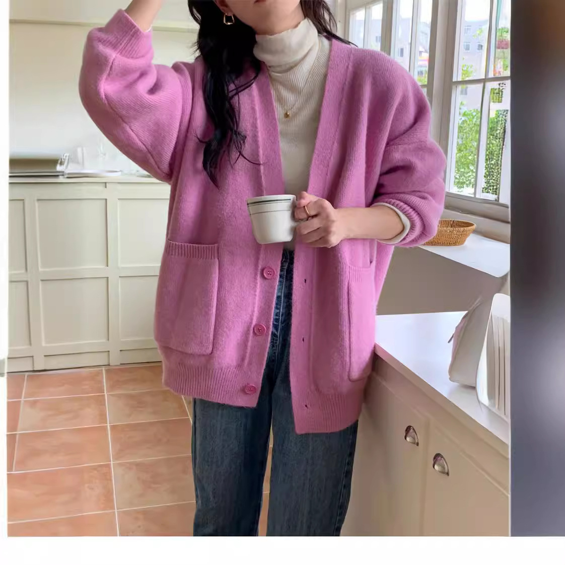 | nameOriginal | 2024 Autumn and Winter New Korean Style Loose Lazy Knitted Cardigan Top Women's Solid Color V-neck All-match Sweater Jacket |
