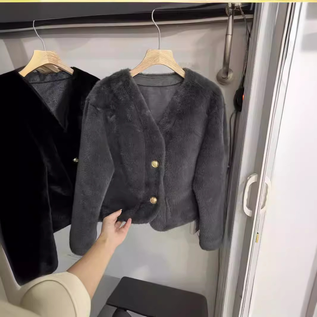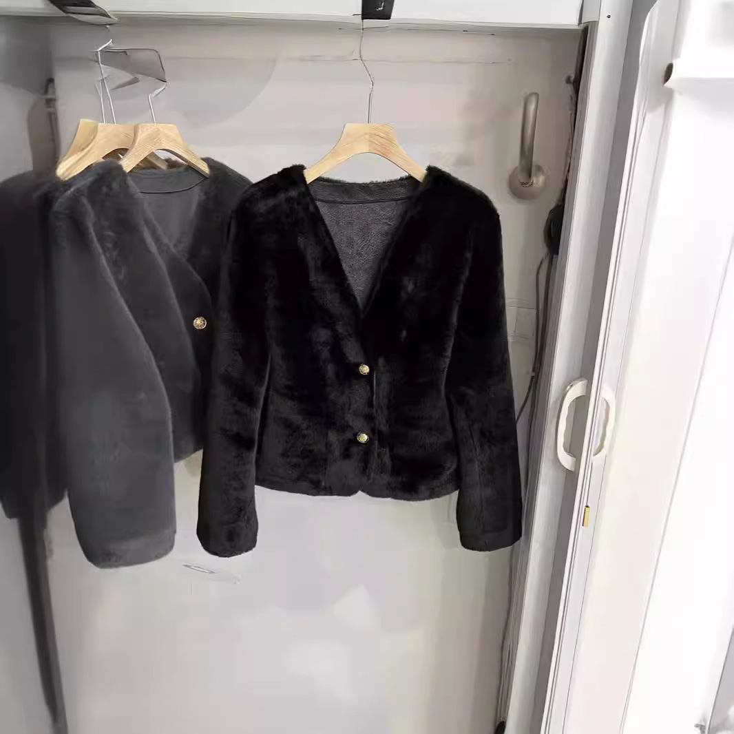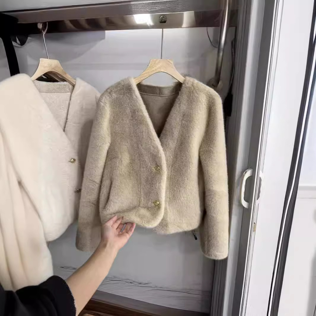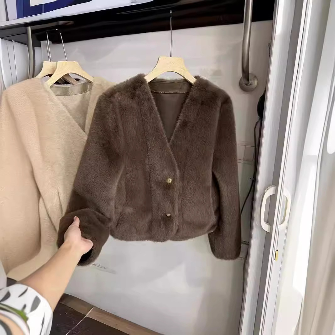 | nameOriginal | 2024 Autumn and Winter New Petite V-Neck Fur One-piece Short Gold Mink Green Fur Coat Anti-season |
