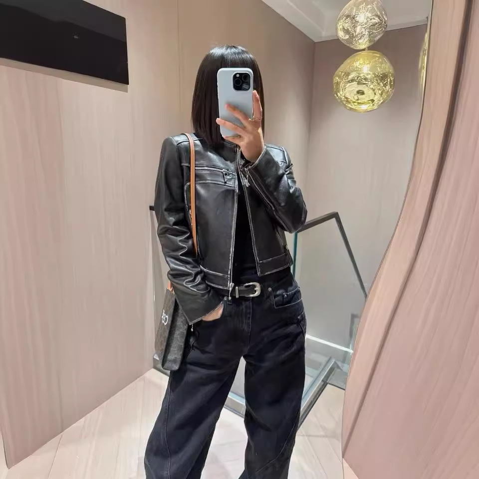 | nameOriginal | 2024 Autumn and Winter New Style Minimality Vertical Collar Jacket Imported Lambskin Genuine Leather Jacket Color Wipe Craft Slim Fit Short |