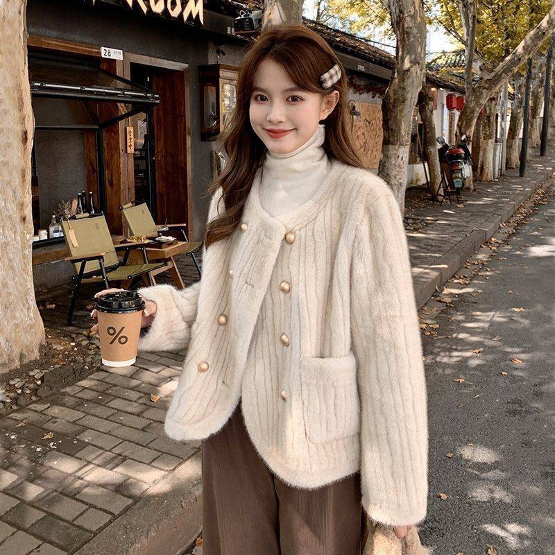 | nameOriginal | 2024 autumn and winter New thickened faux mink velvet quilted thickened double-breasted environmental protection fur women's Chanel style coat women |