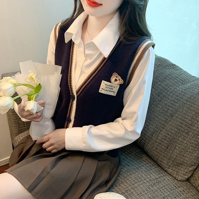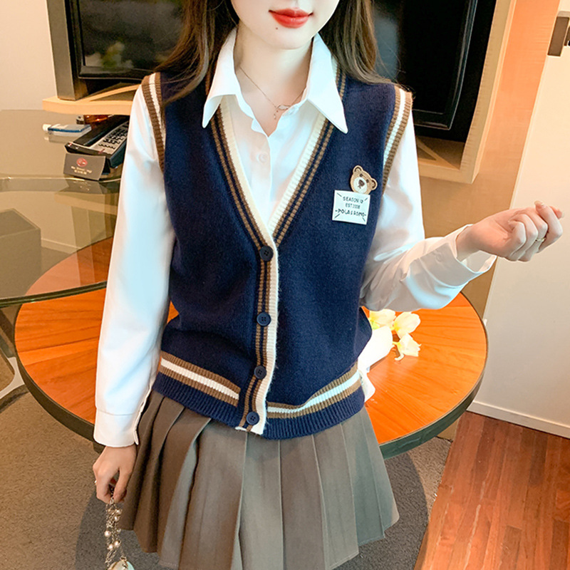 | nameOriginal | 2024 Autumn and Winter New Women's Clothing College Style Salt Knitted Sweater Vest Shirt Joker Two-piece Set |