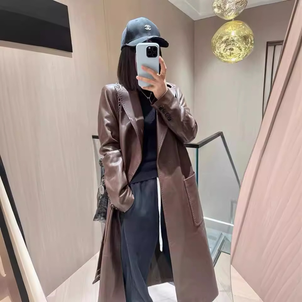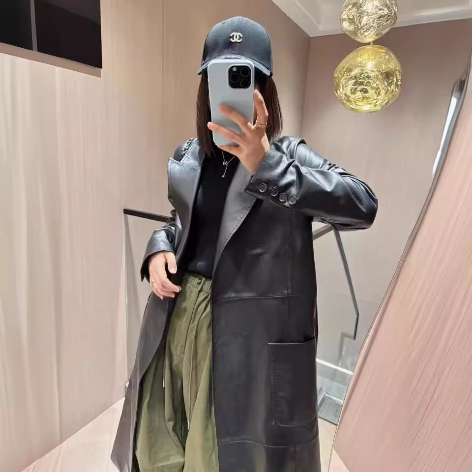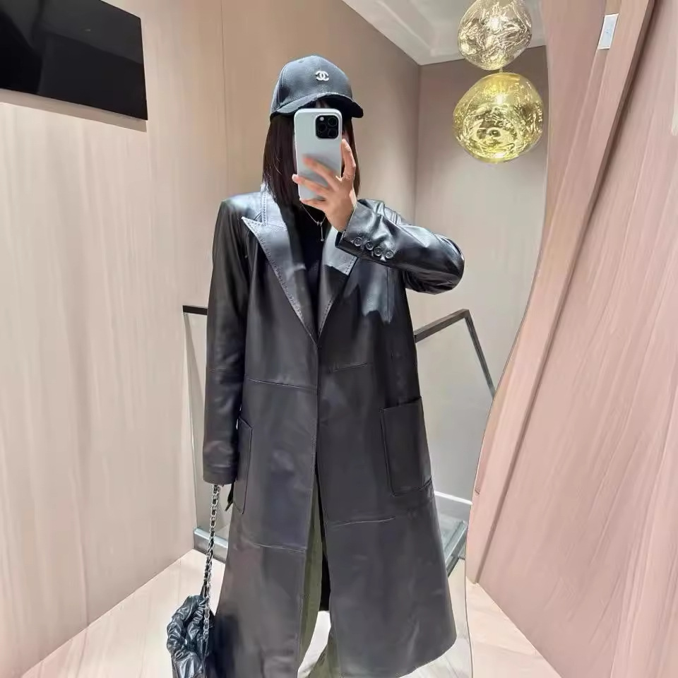 | nameOriginal | 2024 autumn and winter new women's long leather trench coat imported genuine leather lambskin whole YY tribute needle genuine leather loose silhouette |