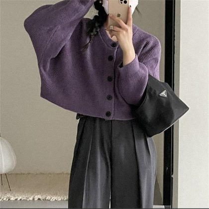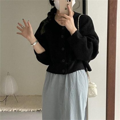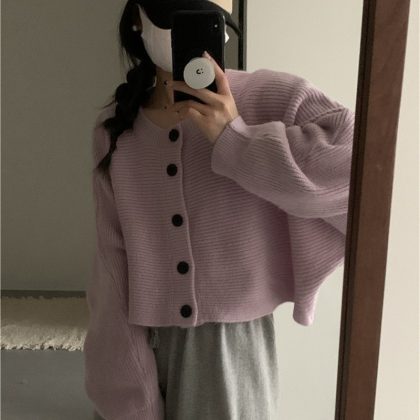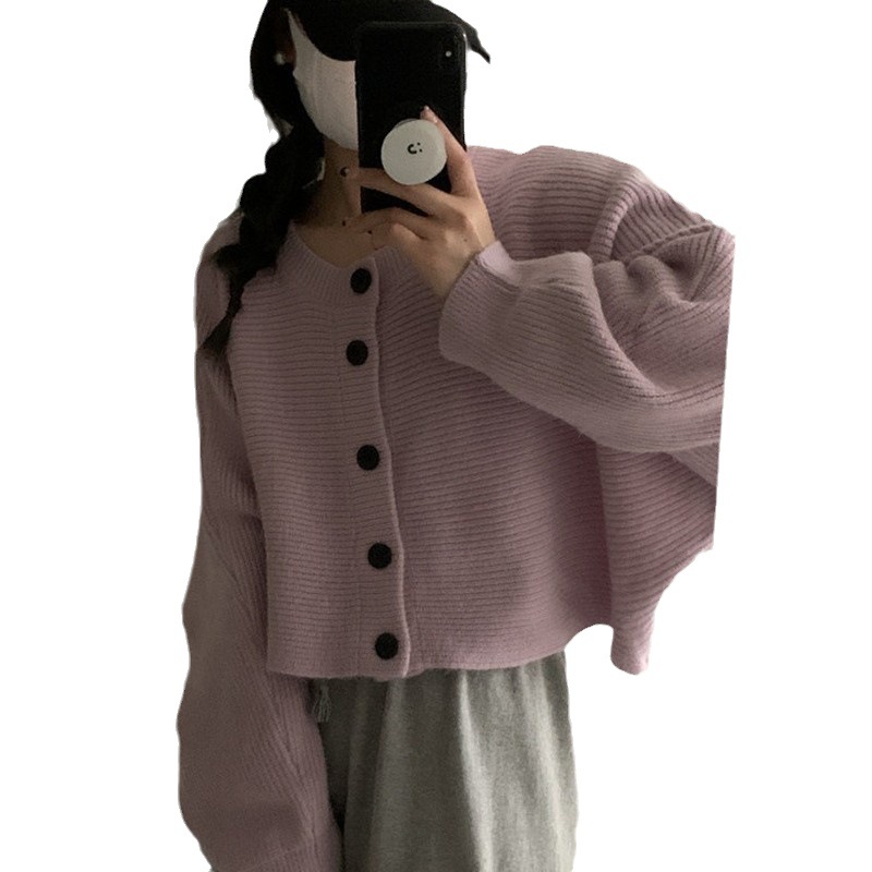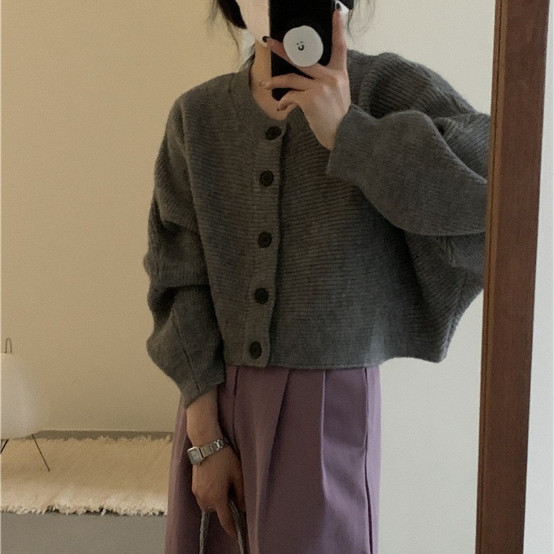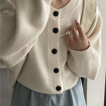 2024 Autumn and Winter Round Neck Knitted Jacket Women’s Korean Style Lazy Style Loose Casual Single Breasted Soft Waxy Long Sleeve Cardigan