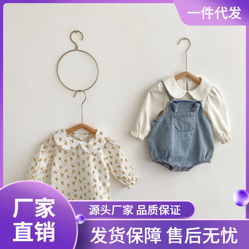 | nameOriginal | 2024 Autumn Baby Girl Baby Big Pocket Denim Strap Pants Doll Collar Long Sleeve Top Base Shirt |