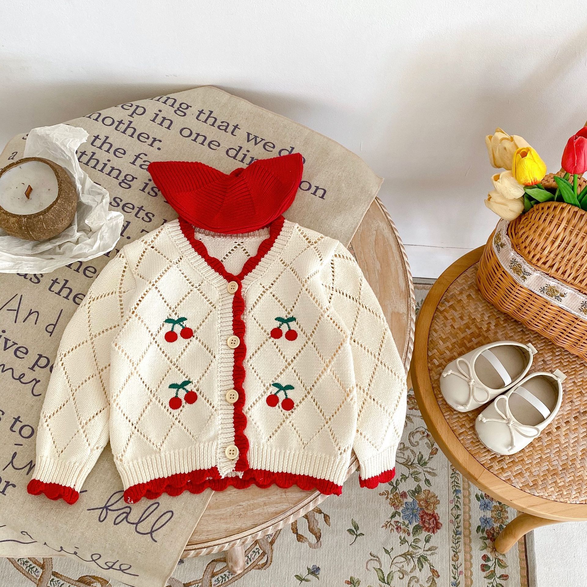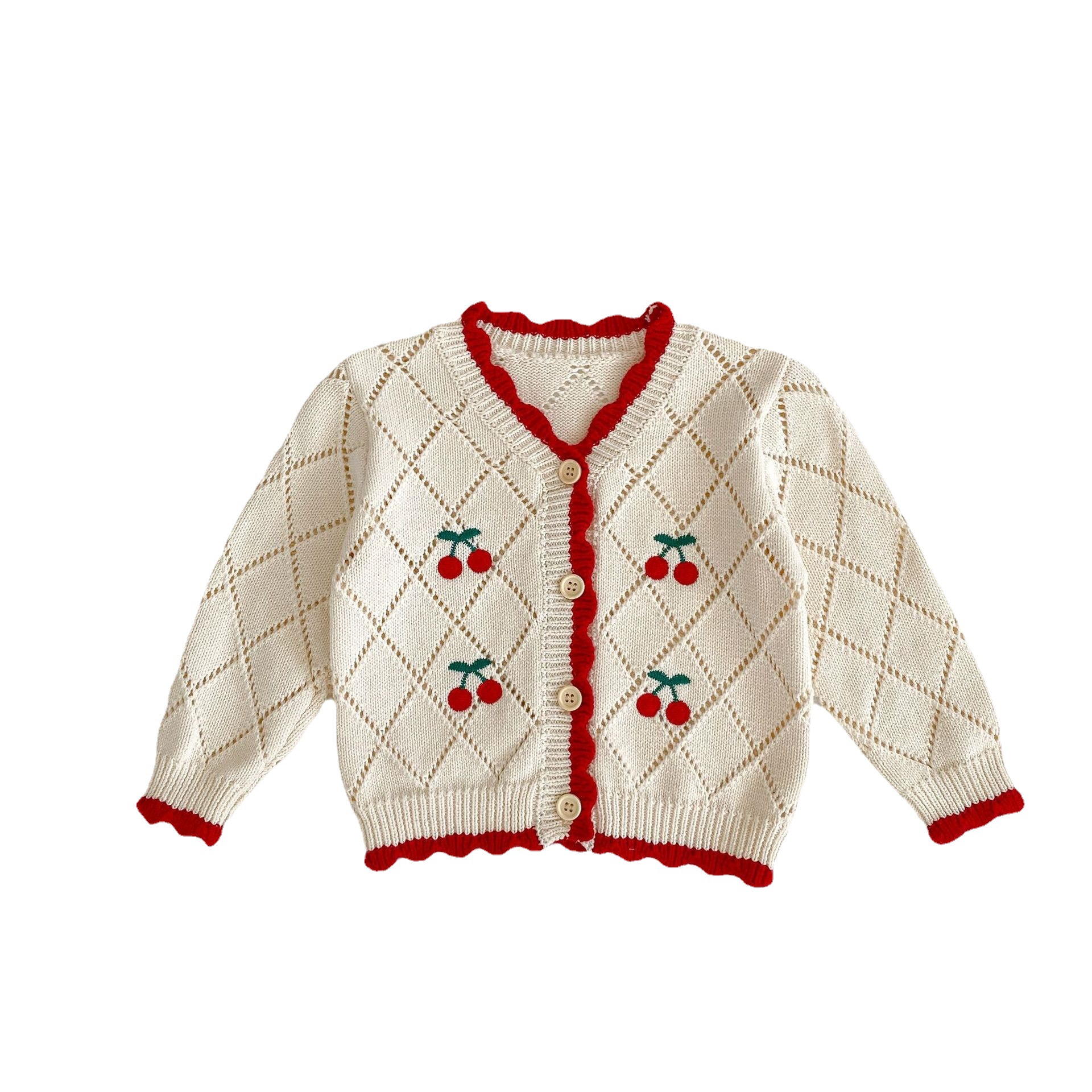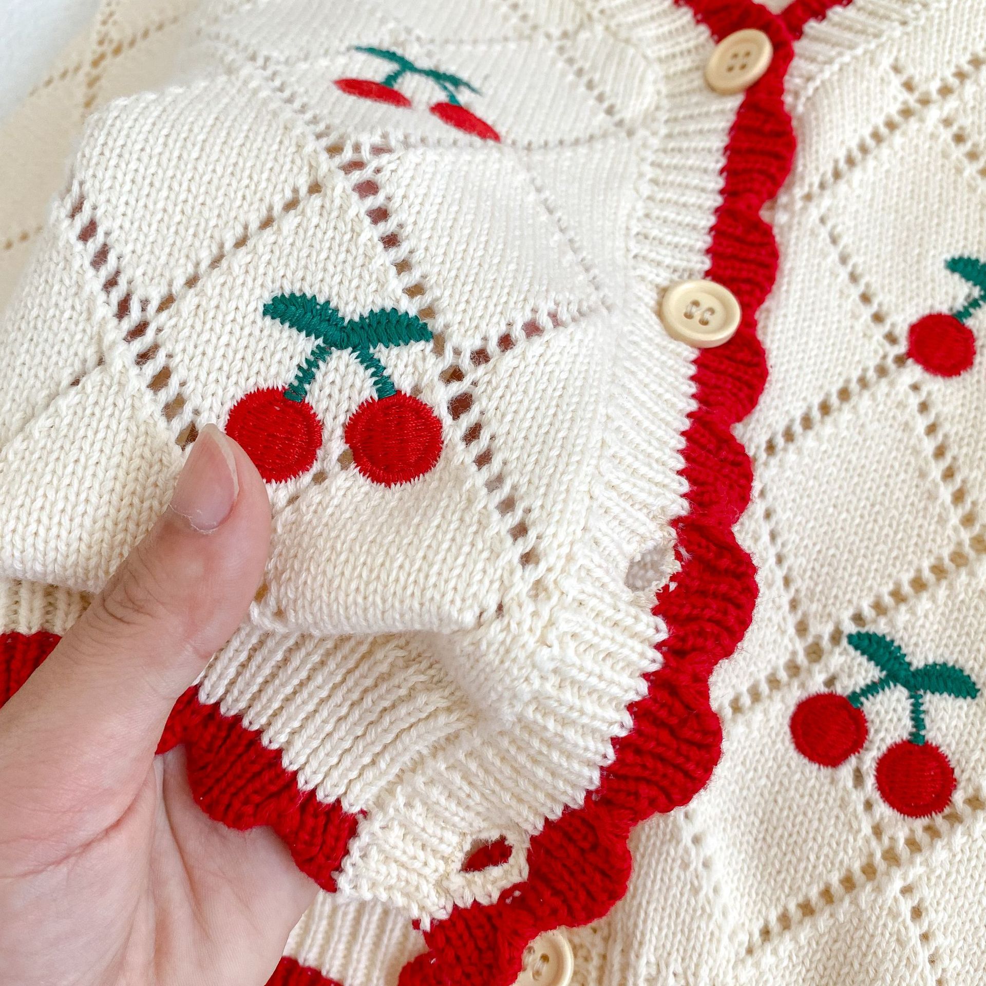 | nameOriginal | 2024 Autumn Baby Girl Baby Net Red Cherry Embroidered Red Edge Knitted Vest Long Sleeve Cardigan Jacket |
