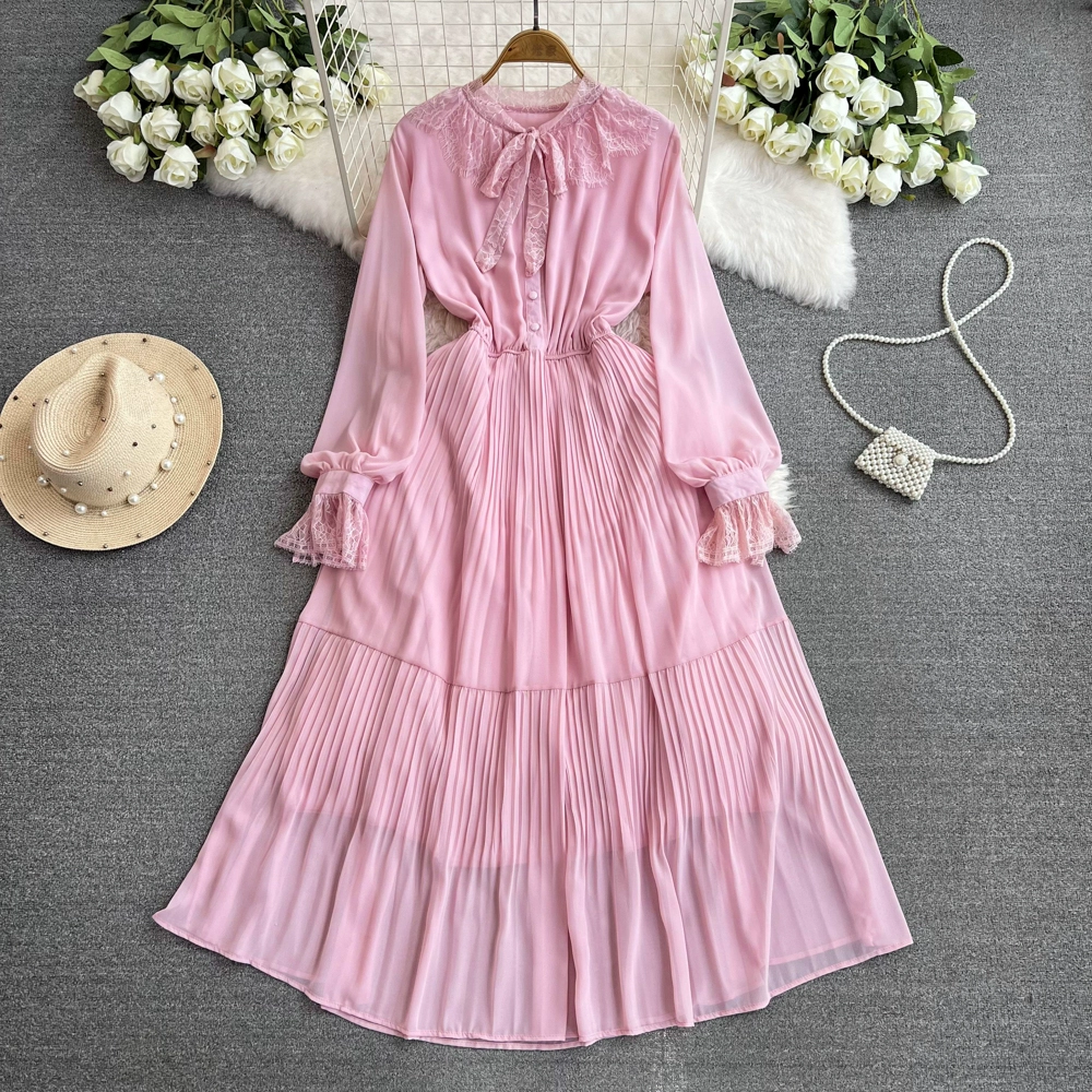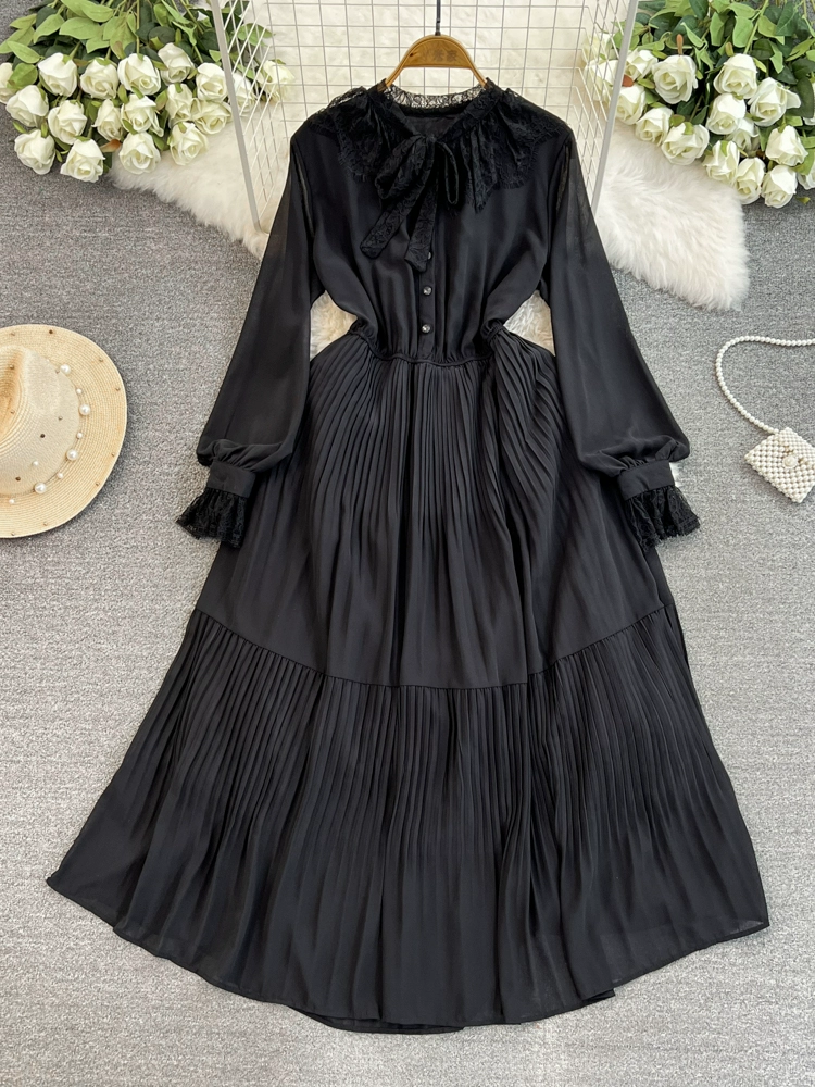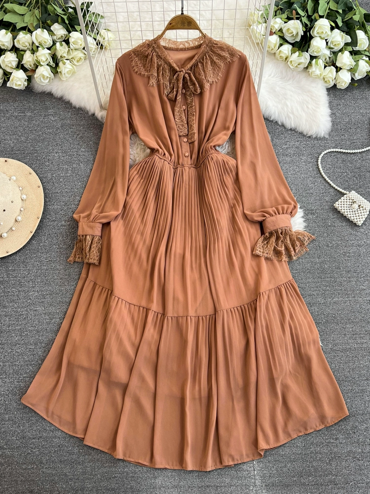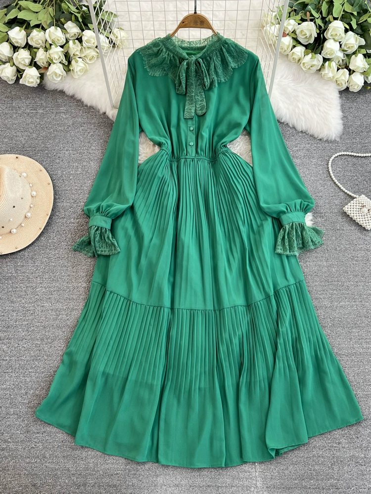 | nameOriginal | 2024 autumn European station retro temperament V-neck ruffled puff long-sleeved waist slimming A-line pleated dress |