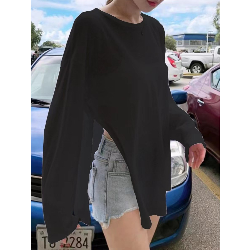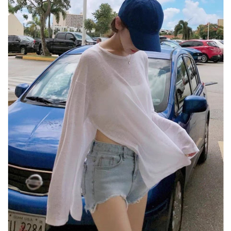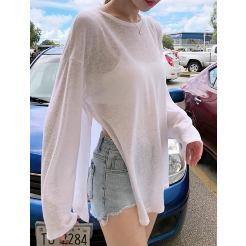 | nameOriginal | 2024 Autumn Knitted Sunscreen Blouse Niche Design Crewneck Top Loose Thin Outer Sunscreen T-shirt Women |