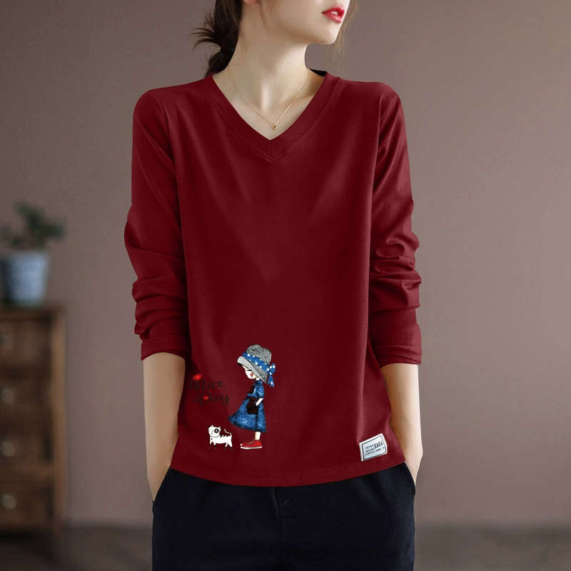 | nameOriginal | 2024 autumn new pure cotton long-sleeved T-shirt women's loose large size foreign style age-reducing belly-covering top bottoming |