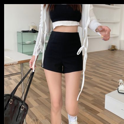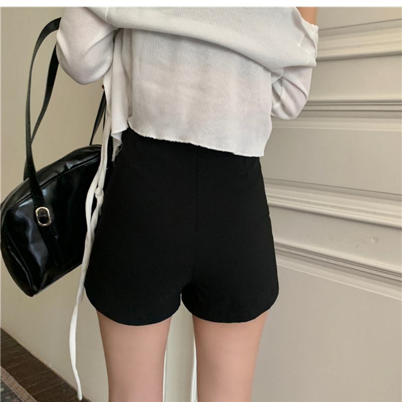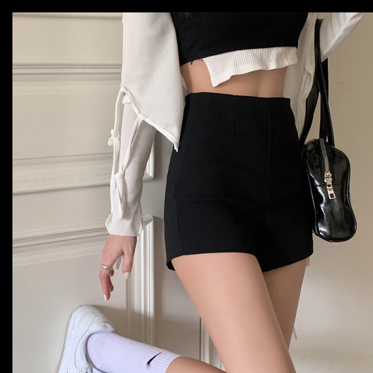 2024 Black High Waist Shorts Women’s Thin Anti-glare Small plus size Slimming Casual Wide Leg Shorts Women