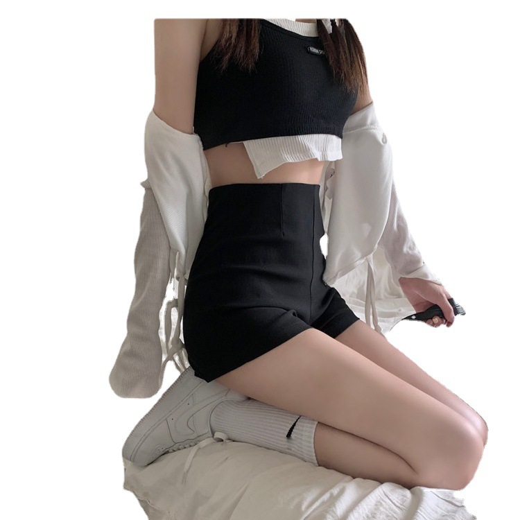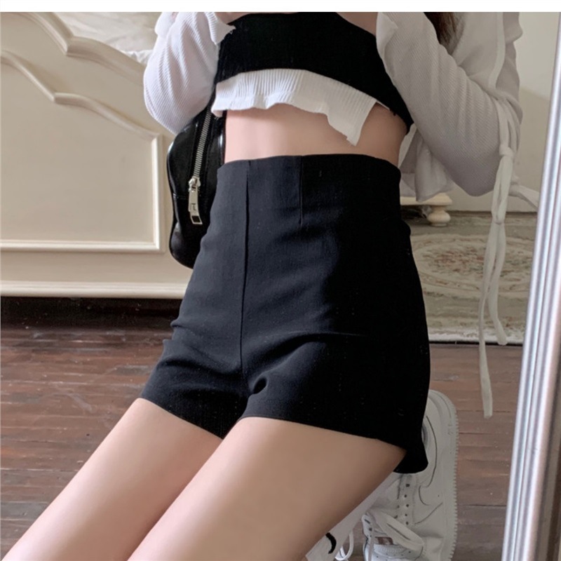 2024 Black High Waist Shorts Women's Thin Anti-glare Small plus size Slimming Casual Wide Leg Shorts Women