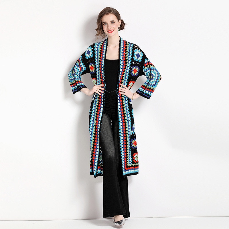 2024 bohemian holiday style ethnic style crocheted vintage Long Hollow shawl cardigan