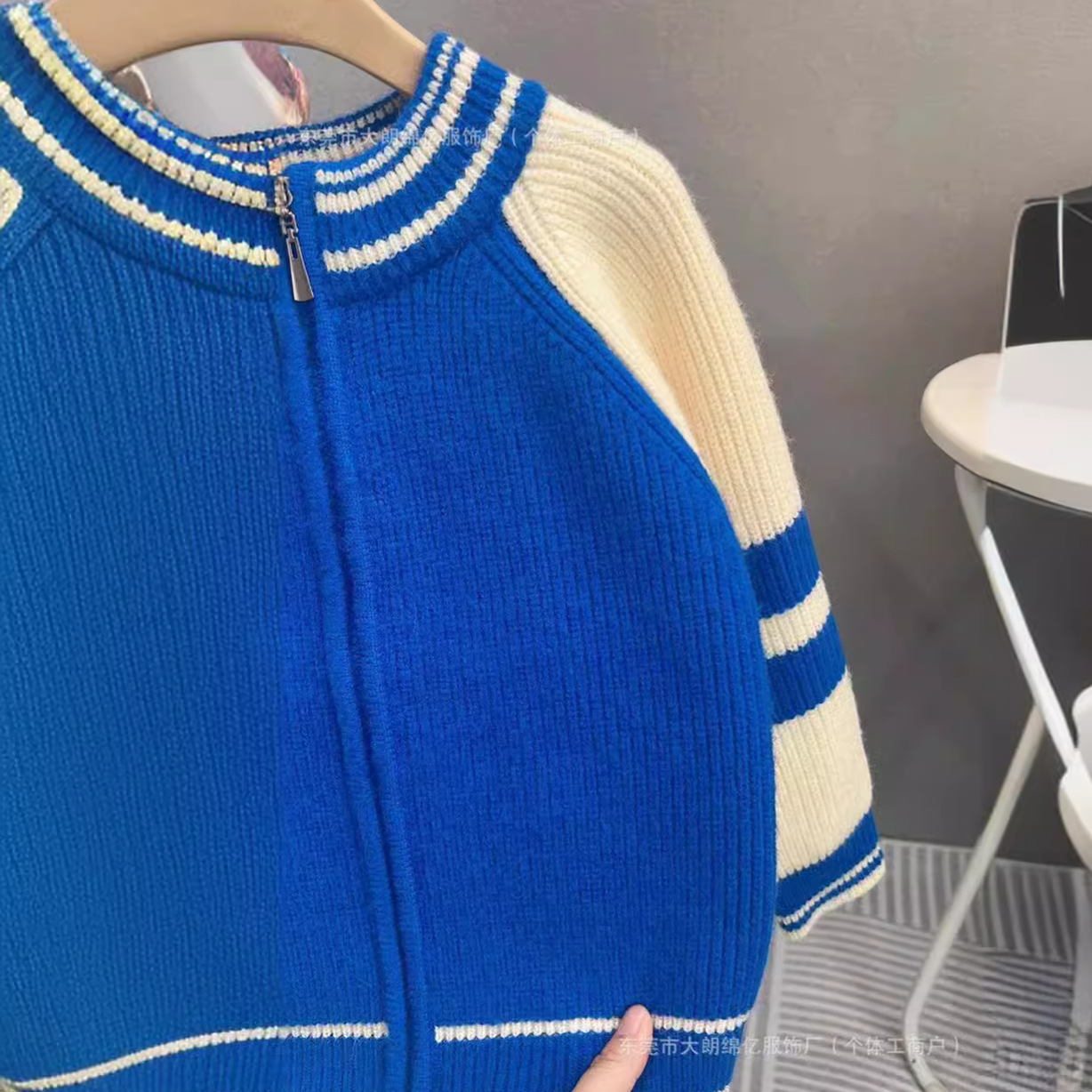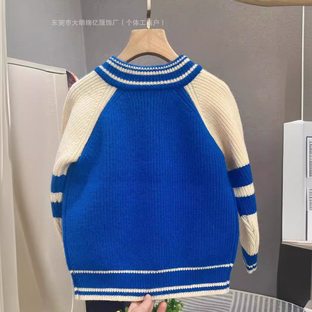 | nameOriginal | 2024 Boys' Blue Korean Color-block Children's Knitted Sweater Top Autumn and Winter Zipper Cardigan Skin-friendly Foreign-style Loose |
