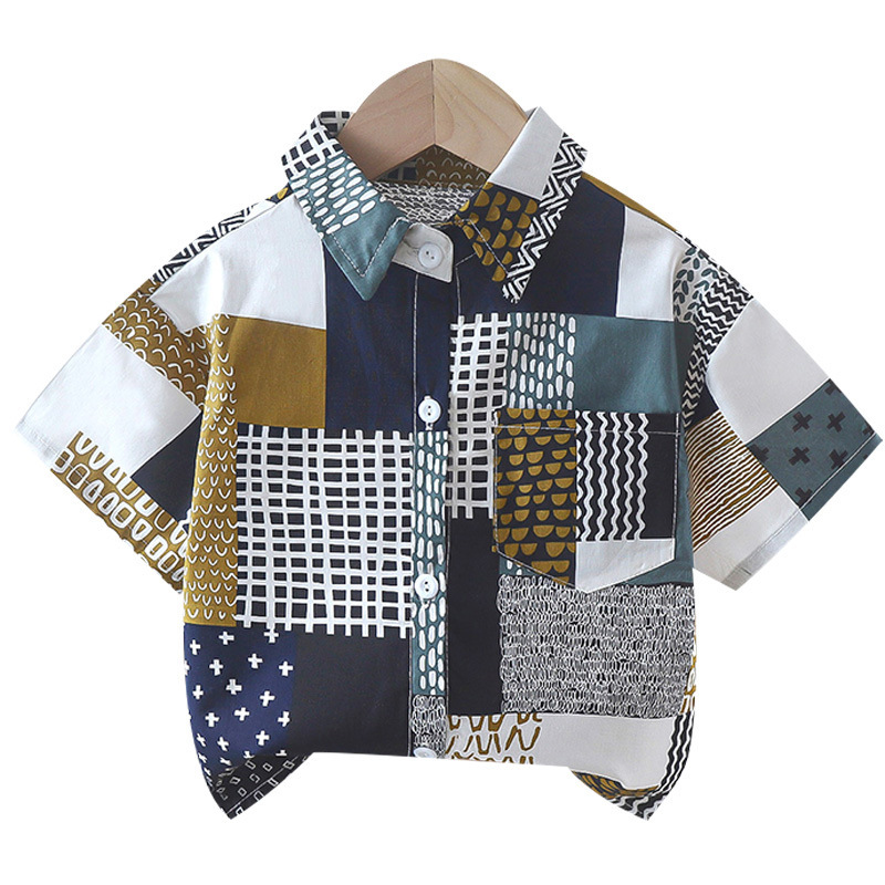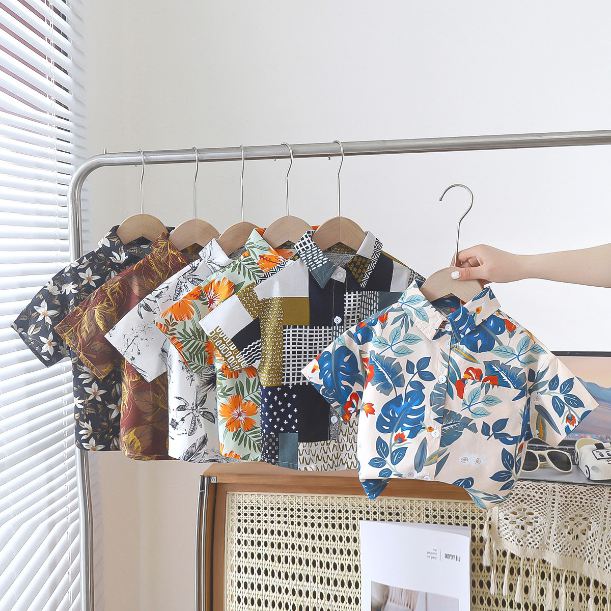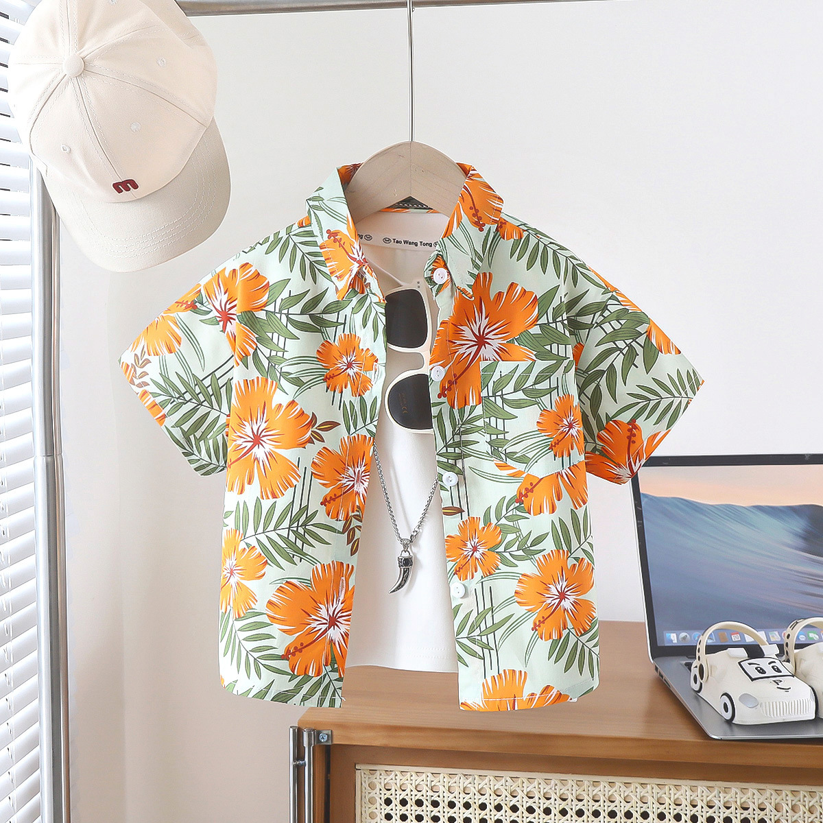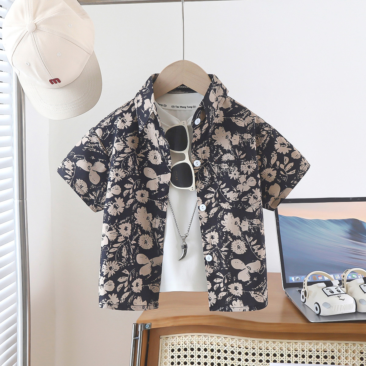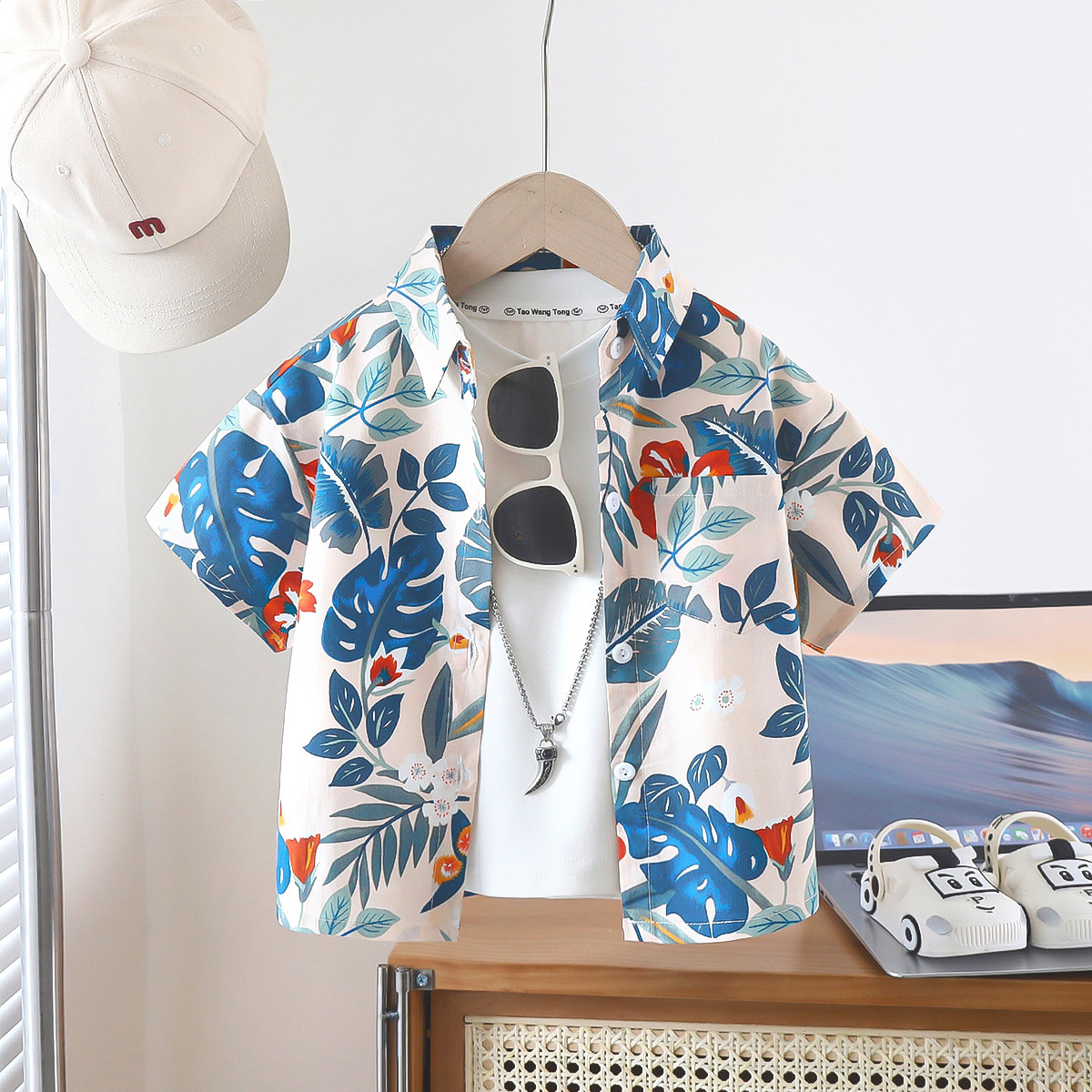 | nameOriginal | 2024 boys' pure cotton shirt summer Pu Shuai beach style short sleeve shirt children's fried street printed men's and women's suit |