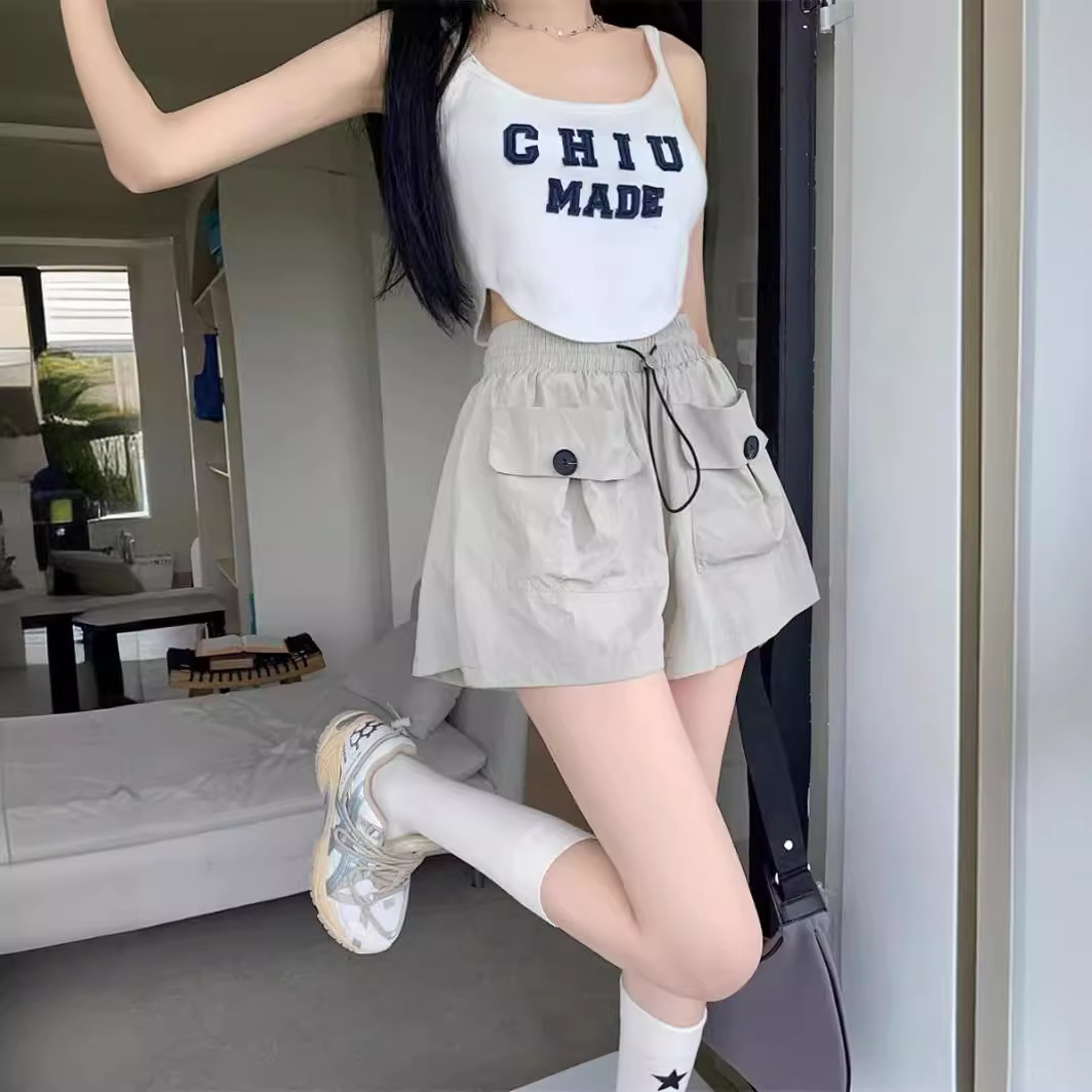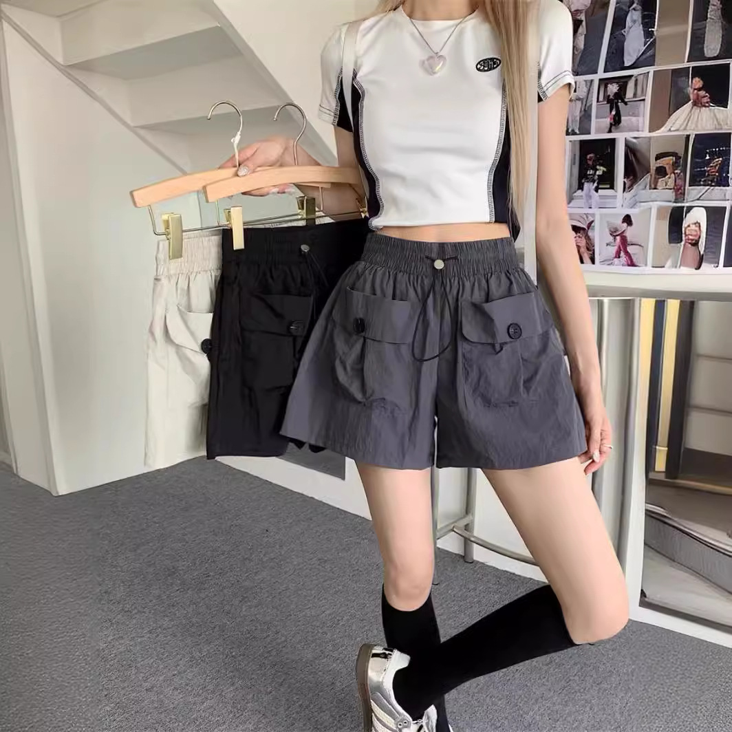 | nameOriginal | 2024 Casual Shorts Women's Lace-up Natural Waist Slimming Korean Style Pocket Covers Niche Loose Wide Leg Straight Pants |