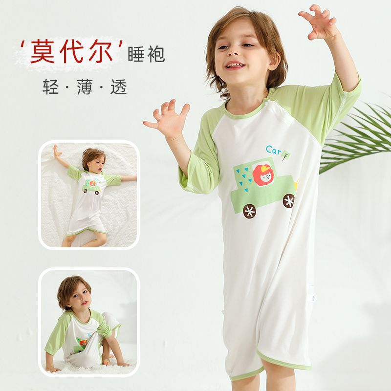 2024 children's nightgown modal summer baby short-sleeved pajamas home air conditioning clothes nightdress jumpsuit anti-cold